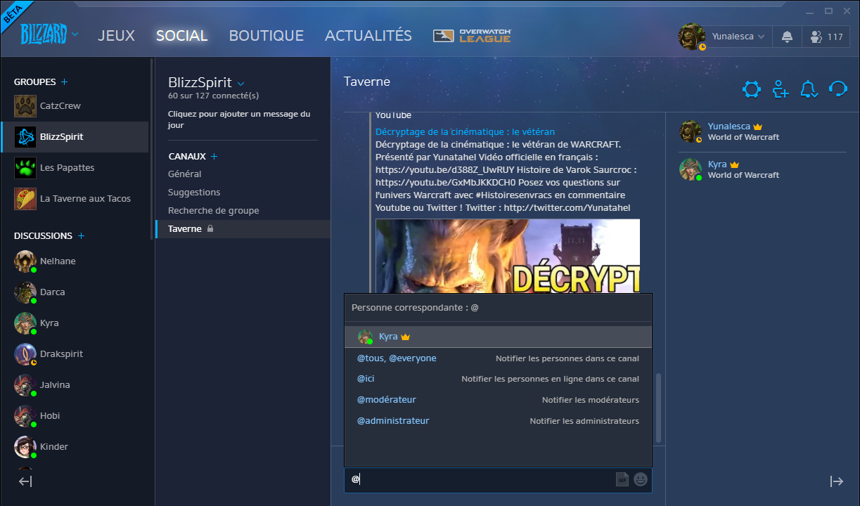 @Tous, ça y est, on a réussi ! Il est désormais possible de @mentionner des membres du groupe, des modérateurs, et des administrateurs de groupes Blizzard !