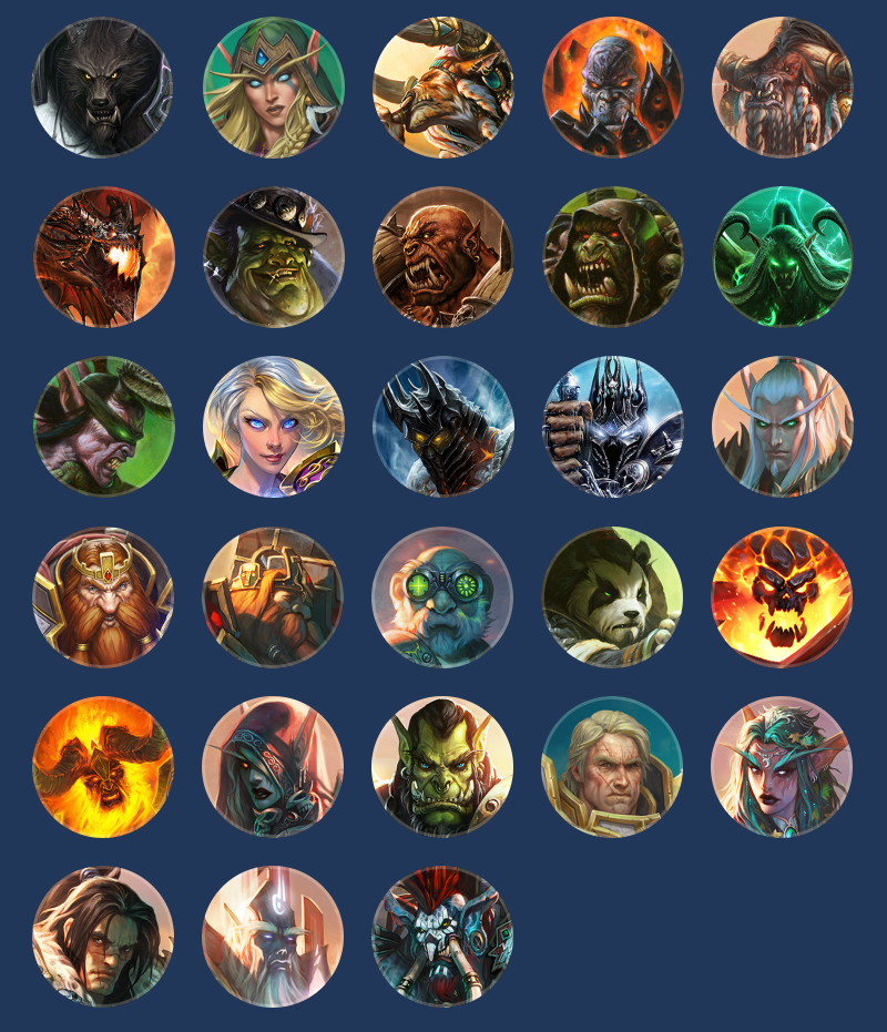 Ces 28 nouvelles icônes de profil sont basés sur des artworks officiels de World of Warcraft comme notamment par les extensions avec le Roi-liche (Wrath of the lich king), Aile de mort (Cataclysme), Pandaren (Mists of Pandaria), Main-noire (Warlords of Draenor) et Illidan (Légion). De plus, certaines icônes de profil vous proposent les protagonistes importants de l'histoire comme Alleria, Turalyon, Sargeras, Sylvanas, Genn Grisetête, Gallywix ou même Velen.