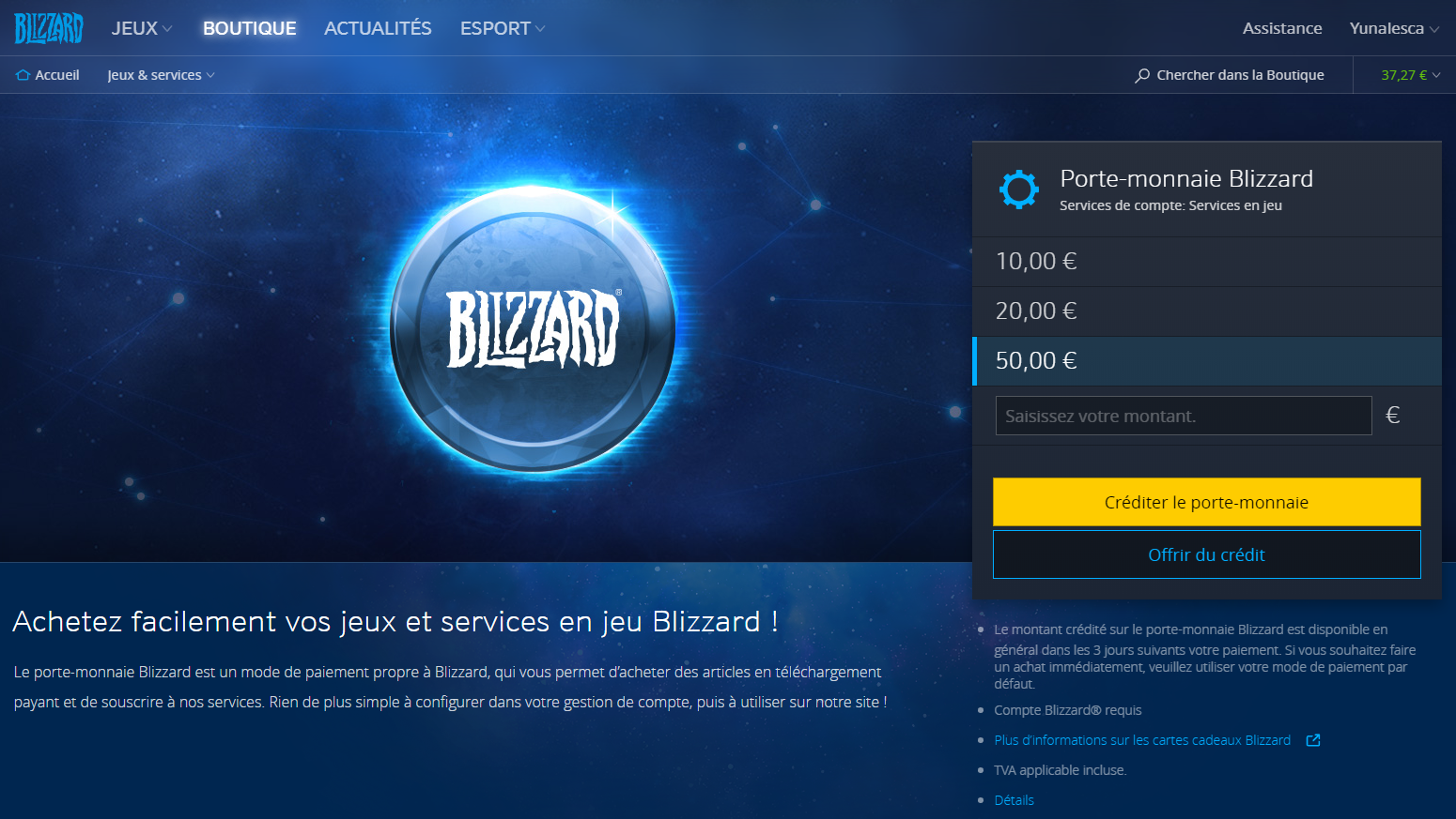 Bonne nouvelle : nous étendons notre service cadeau ! Offrir du crédit sur le porte-monnaie Blizzard de vos amis est désormais possible : vous pouvez ainsi bénéficier des avantages des cartes vendues en magasin dans un nouveau format numérique facile à utiliser.