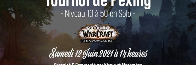 En attendant l'arrivée de la prochaine mise à jour 9.1 de Shadowlands, un tournoi de pexing est organisé du niveau 10 à 50 en solo par deux membres de la communauté de World of Warcraft avec Khayn et Mashmhar pendant la journée du samedi 12 juin 2021, de 14 heures à 18 heures. Avec le soutien de l'équipe de Blizzard, plusieurs lots seront mis en jeu pour les 5 premières équipes gagnantes : temps de jeu, mascottes, montures et jouets de la boutique officielle. Pendant une course de 4 heures diffusée sur Twitch ou Youtube, les participants devront ainsi monter au plus haut niveau pour tenter de remporter le tournoi. Depuis la refonte de l'expérience à Shadowlands, les stratégies pour emporter la victoire sont multiples mais plusieurs règles sont mises en place pour mettre les participants sur le même pied d'égalité. Notez que vous pouvez également participer en suivant la diffusion sur Twitch par Khayn depuis votre canapé pour suivre les participants en direct dans cette course commentée.