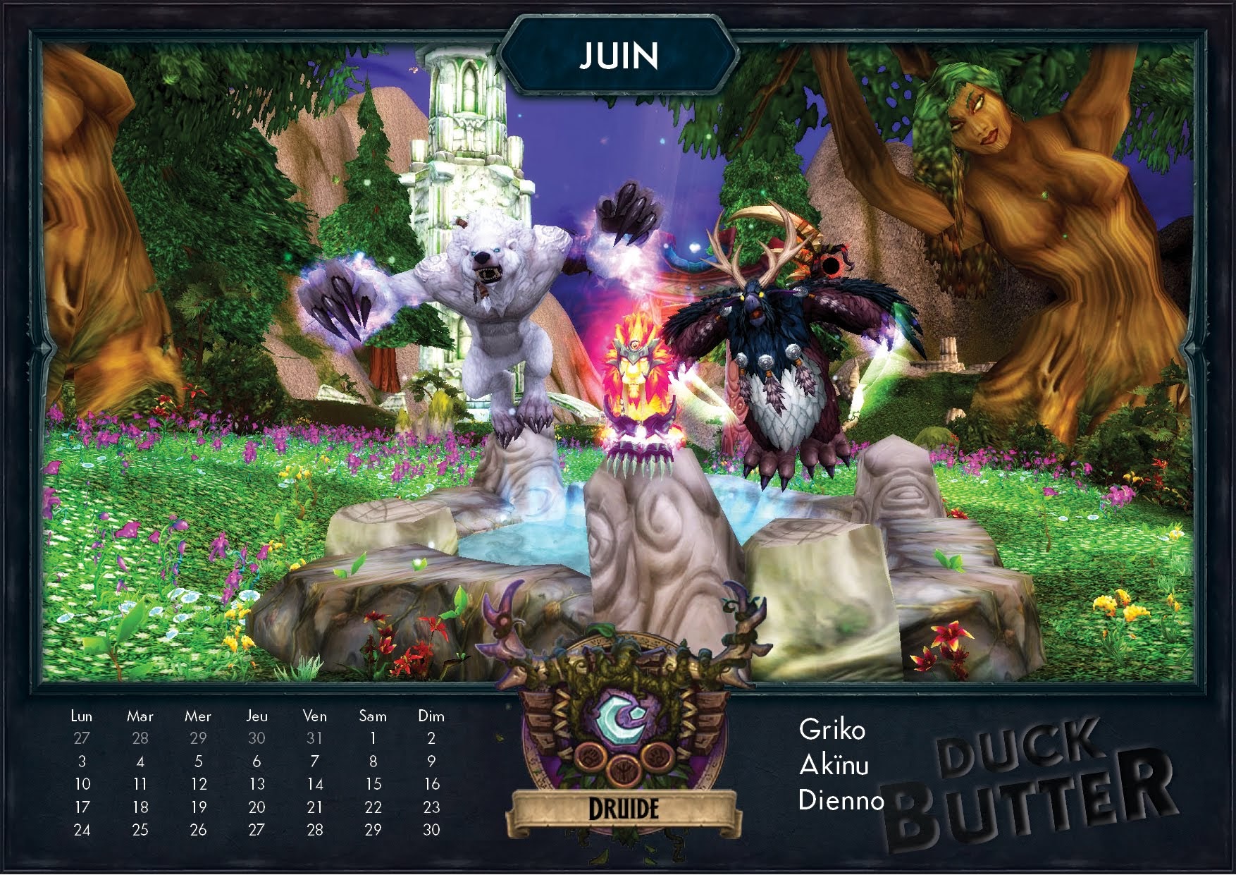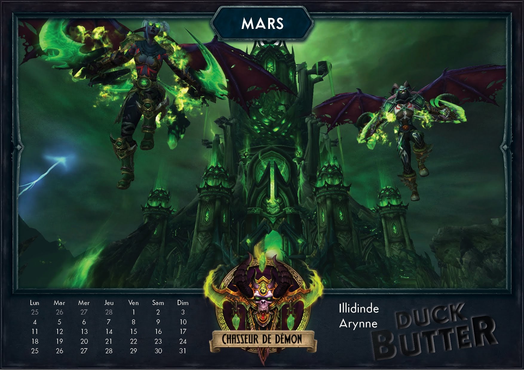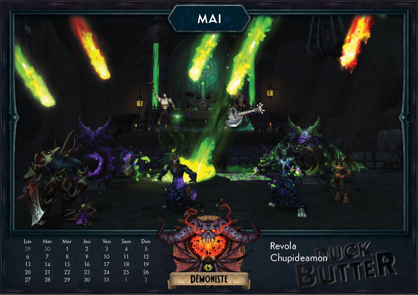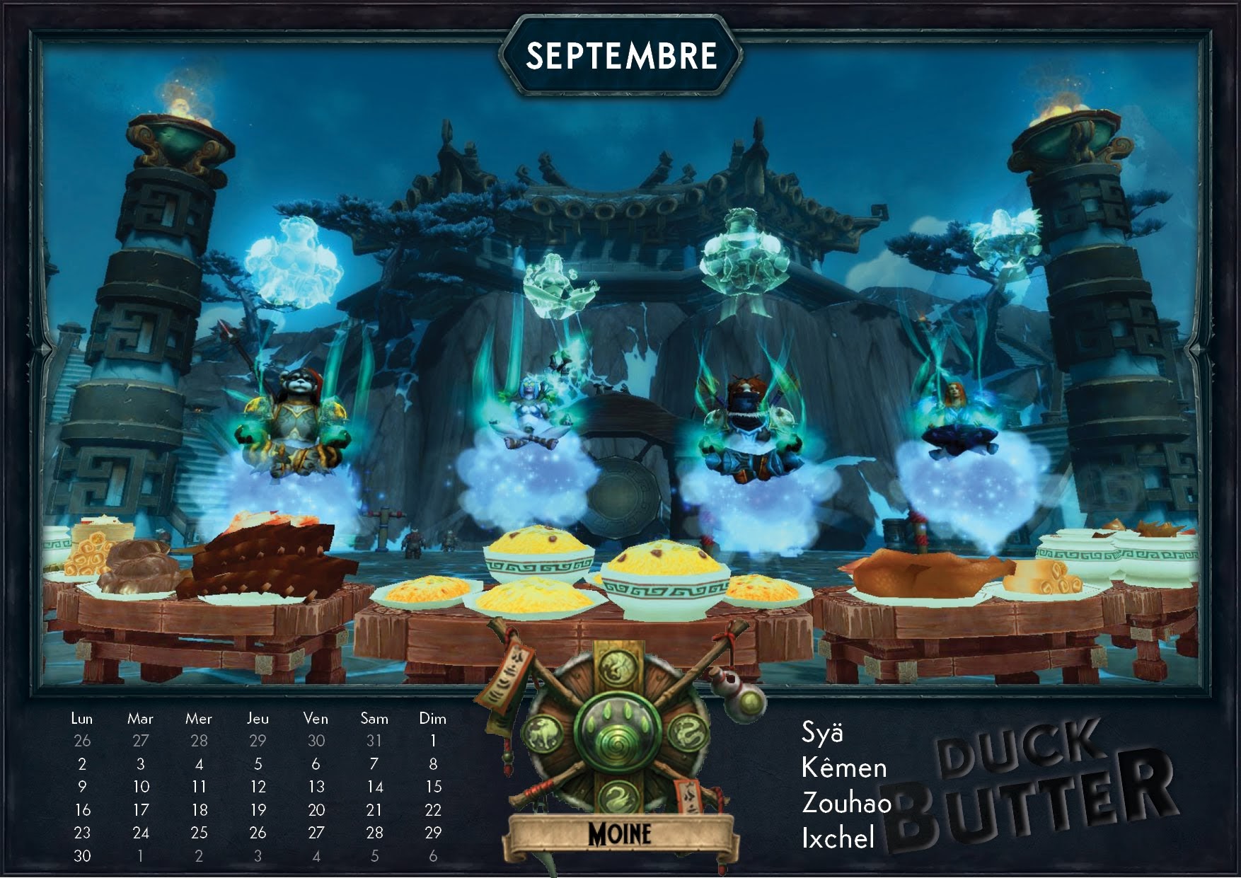 Cahouet et Ganotron de la guilde Duck Butter sur le serveur Rashgarroth m'ont contacté pour partager l'une de leur création avec la participation de tous leurs membres. Pour attaquer sereinement l'année 2019, vous pouvez retrouver un calendrier thématique avec les 12 classes de World of Warcraft pour chaque mois de l'année. Par des captures d'écran retravaillées pour donner un résultat sympathique, vous serez immédiatement plongé dans le thème de votre classe comme un mois d'avril à la Couronne de glace par les chevaliers de la mort ou un mois d'octobre sur la refonte du tombeau d'Uther par les paladins.