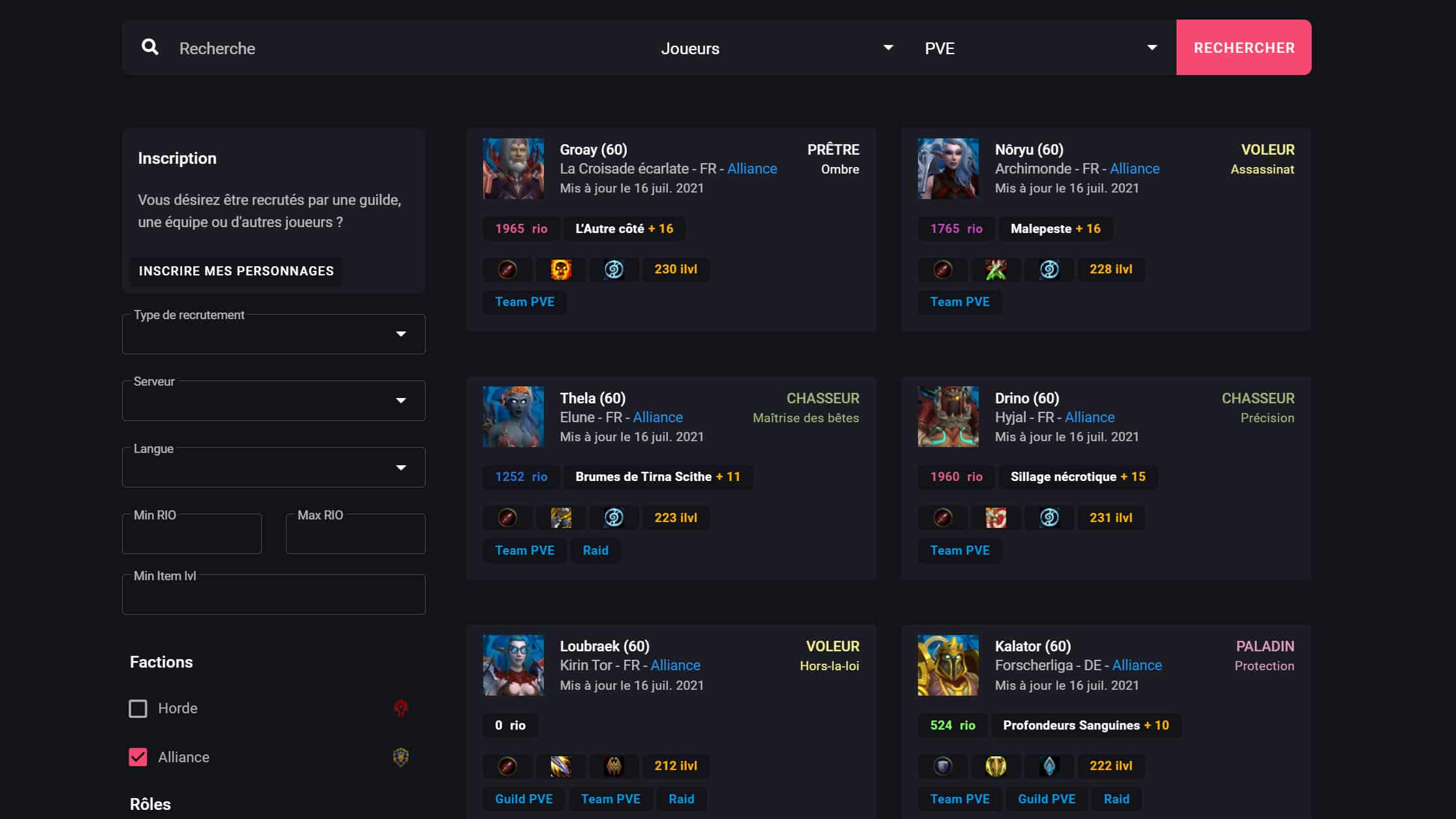 Depuis plusieurs mois, Nylerog a travaillé sur l'évolution du projet « Looking for Key » pour proposer une version plus complète à la communauté. Le site Warcraft Finder est un nouveau réseau social sur World of Warcraft pour recruter des joueurs à travers un catalogue aux multiples options afin de vous accompagner dans les donjons de clé mythique, les raids ou les activités JcJ. Cet outil permet également de publier des annonces pour recruter de nouveaux membres en fonction de vos critères de recherche. Il est également possible d'y retrouver une messagerie intégrée, un planificateur de raids ou même un gestionnaire de guilde avec plusieurs options intuitives. À travers toutes ces options, disponibles pour toutes les régions en Français et en Anglais, vous pourrez ainsi partir à l'aventure avec de nouveaux compagnons de jeu avec les même critères de recherches sur Warcraft Finder.