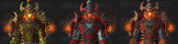 Boubouille de MMO-Champion a pu trouver une nouvelle intéressante car il s'agit du visuel du T15 démoniste grâce au prochain patch 5.2 : la chute du Roi-tonnerre. Il existe en trois couleurs actuellement pour le LFR, mode normal et mode héroïque ayant les couleurs respectives : jaune, rouge et orange. Je ne sais pas vous, mais je trouve qu'il manque d'un coté démoniaque mise à part la tête légèrement particulière.
