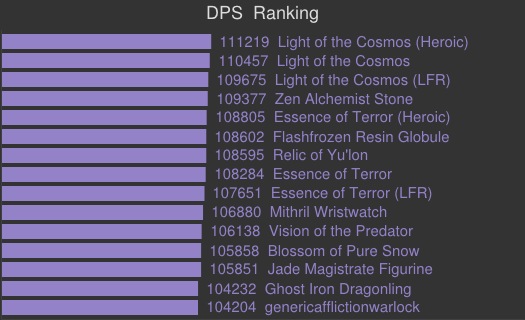 C’est bizarre j’ai pas les mêmes résultats avec simulationcraft, en effet il me met l’essence de terreur LFR supérieure à la lumière du cosmos LFR :s