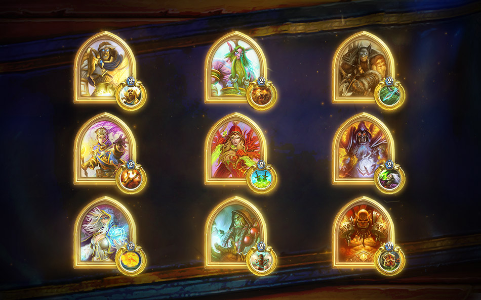 - Les portraits dorés des héros ont été ajoutés et peuvent maintenant être débloqués en gagnant 500 parties classées avec un héros ! Suivez votre progression à l’écran de sélection de deck, en Partie classée.