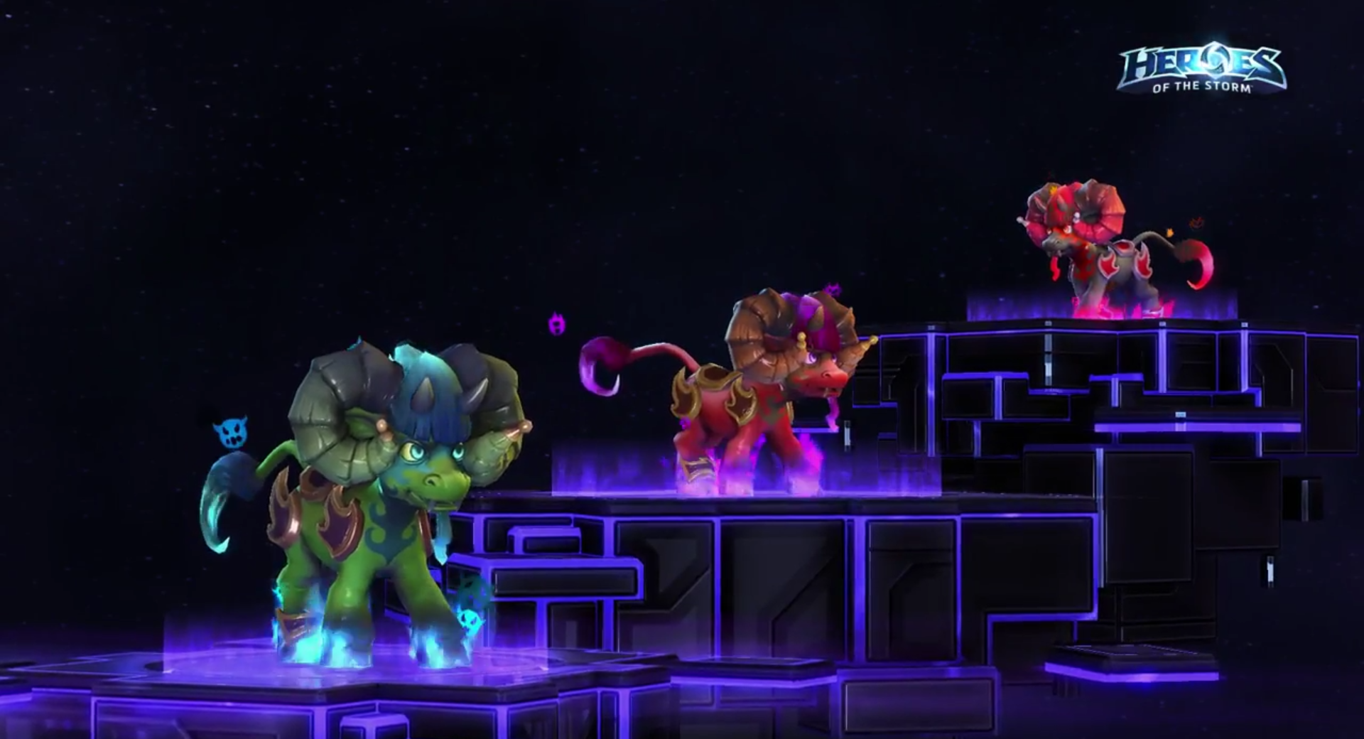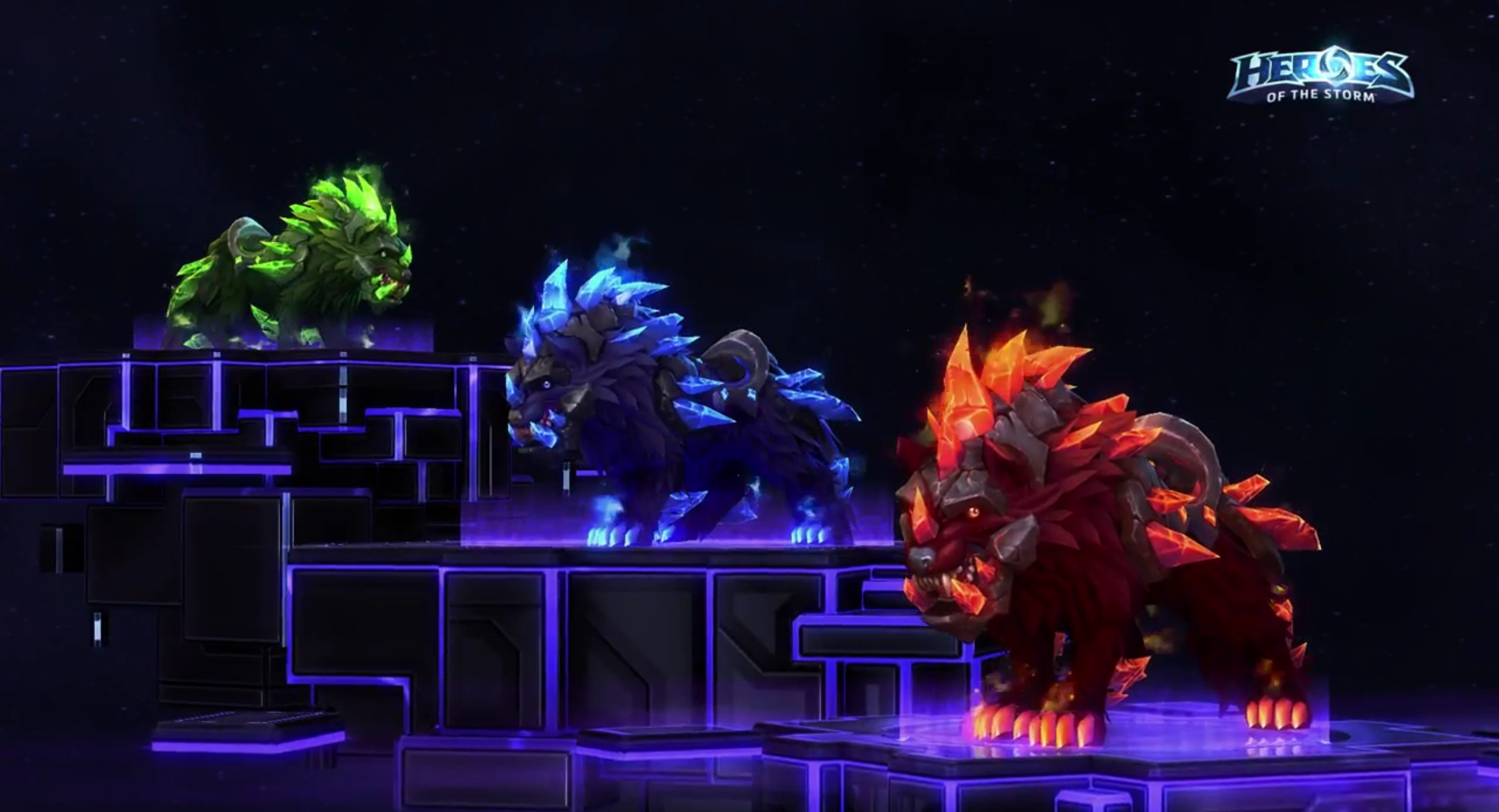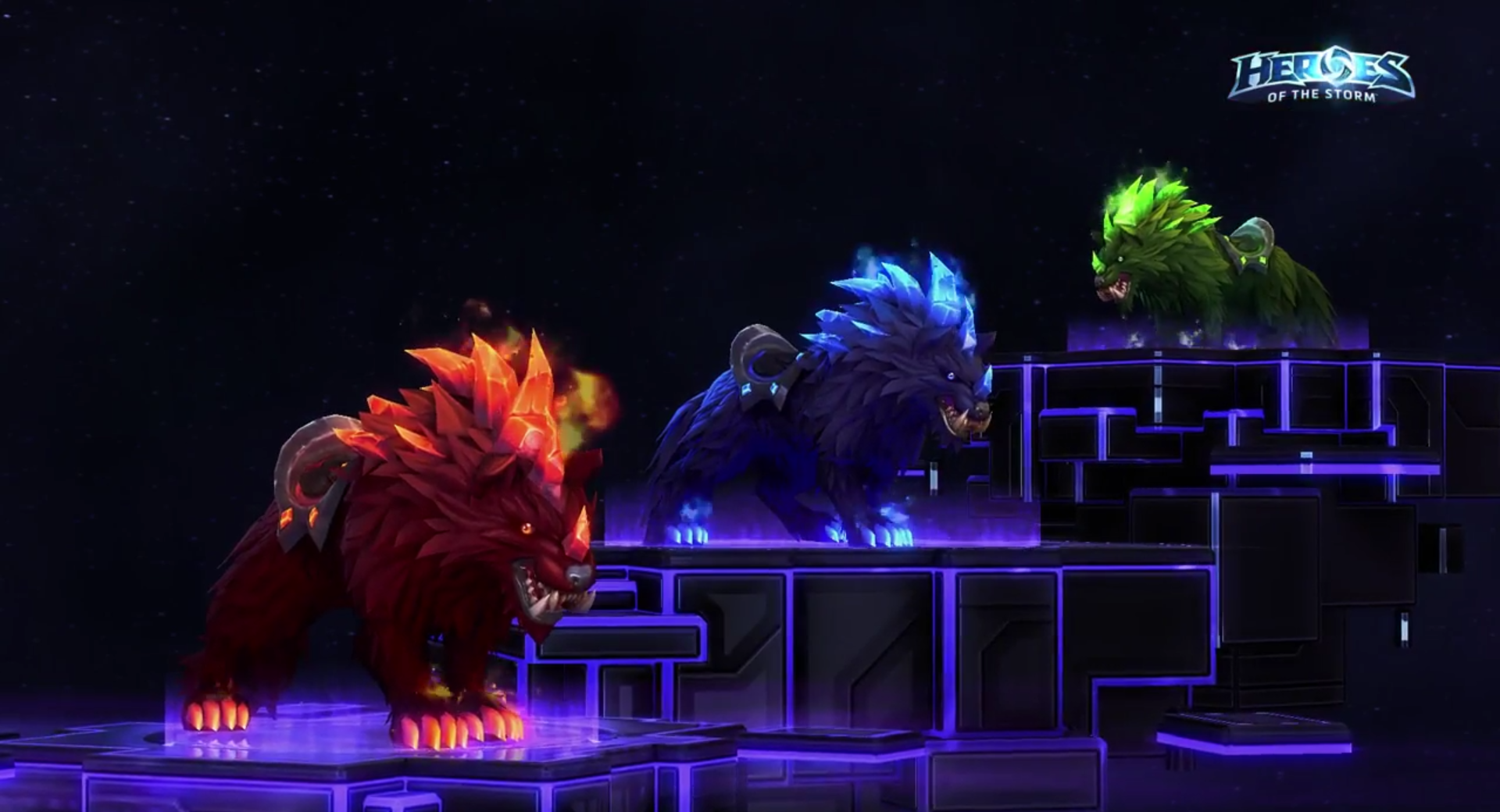 De plus, la révélation nous montre également trois nouvelles montures, disponible (très certainement) dans la boutique officielle d'Heroes of the Storm notamment avec le loup élémentaire en rouge, le loup élémentaire épique en bleu, le billie de l'enfer : la monture spéciale de la variation de modèle de Chromie :