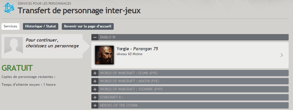 A l'heure où nous écrivons ces lignes, le transfert est disponible sur votre compte Battle.net (si vous avez un compte WoW actif, et un Moine dans Diablo III, bien sûr), mais les PTR ne sont pas accessibles à cause de l'affluence importante !