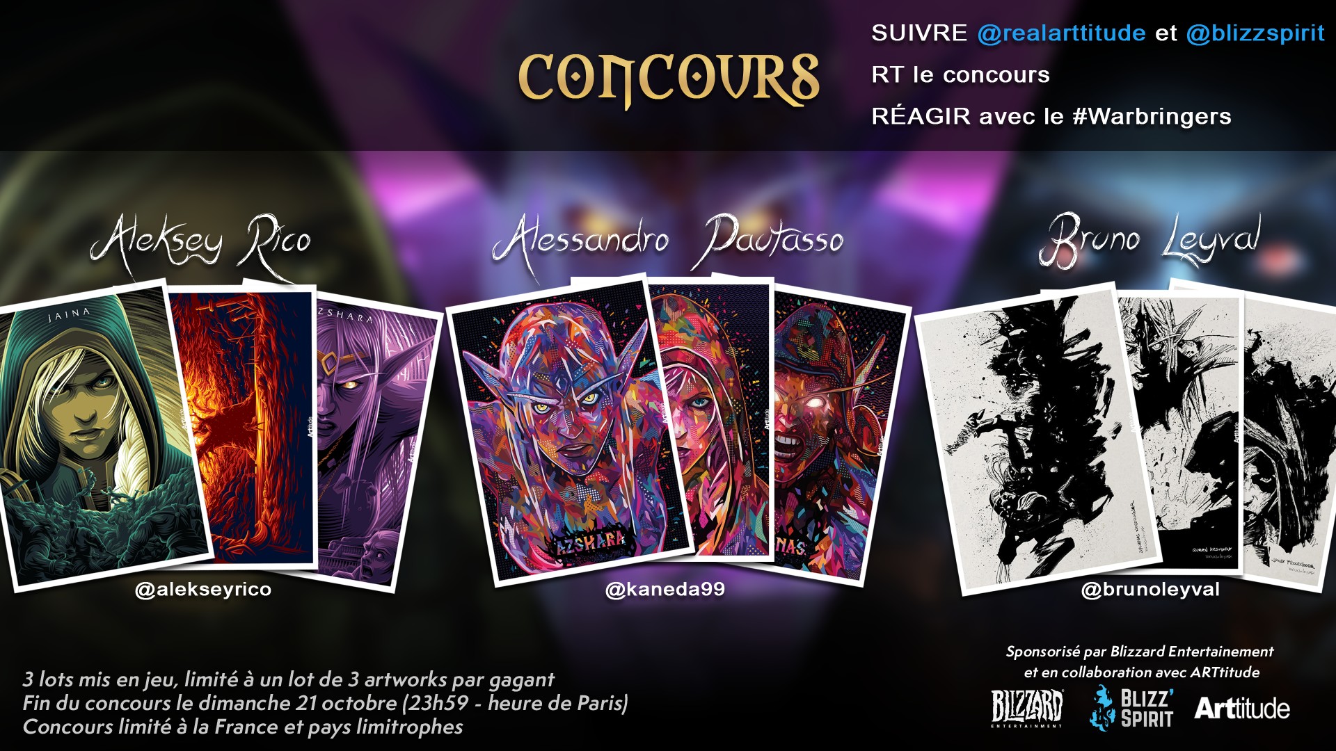 Avant le lancement de Battle for Azeroth au cours du mois de Juillet, Blizzard a lancé la série d'animation « Prémices » pour nous faire vivre l'histoire de trois personnages emblématiques de World of Warcraft : Jaina Portvaillant, Sylvanas Coursevent et la reine Azshara. En partenariat avec Blizzard et en collaboration avec ARTtitude, nous avons le privilège de vous proposer un concours spécial pour tenter de reporter un lot de trois posters parmi les trois tubes mis en jeu dessiné par les artistes Aleksey Rico, Alessandro Pautasso et Bruno Leyval avec un style graphique très différent. Vous pouvez retrouver toutes les modalités du concours à la suite de notre article qui se déroule sur notre Twitter.