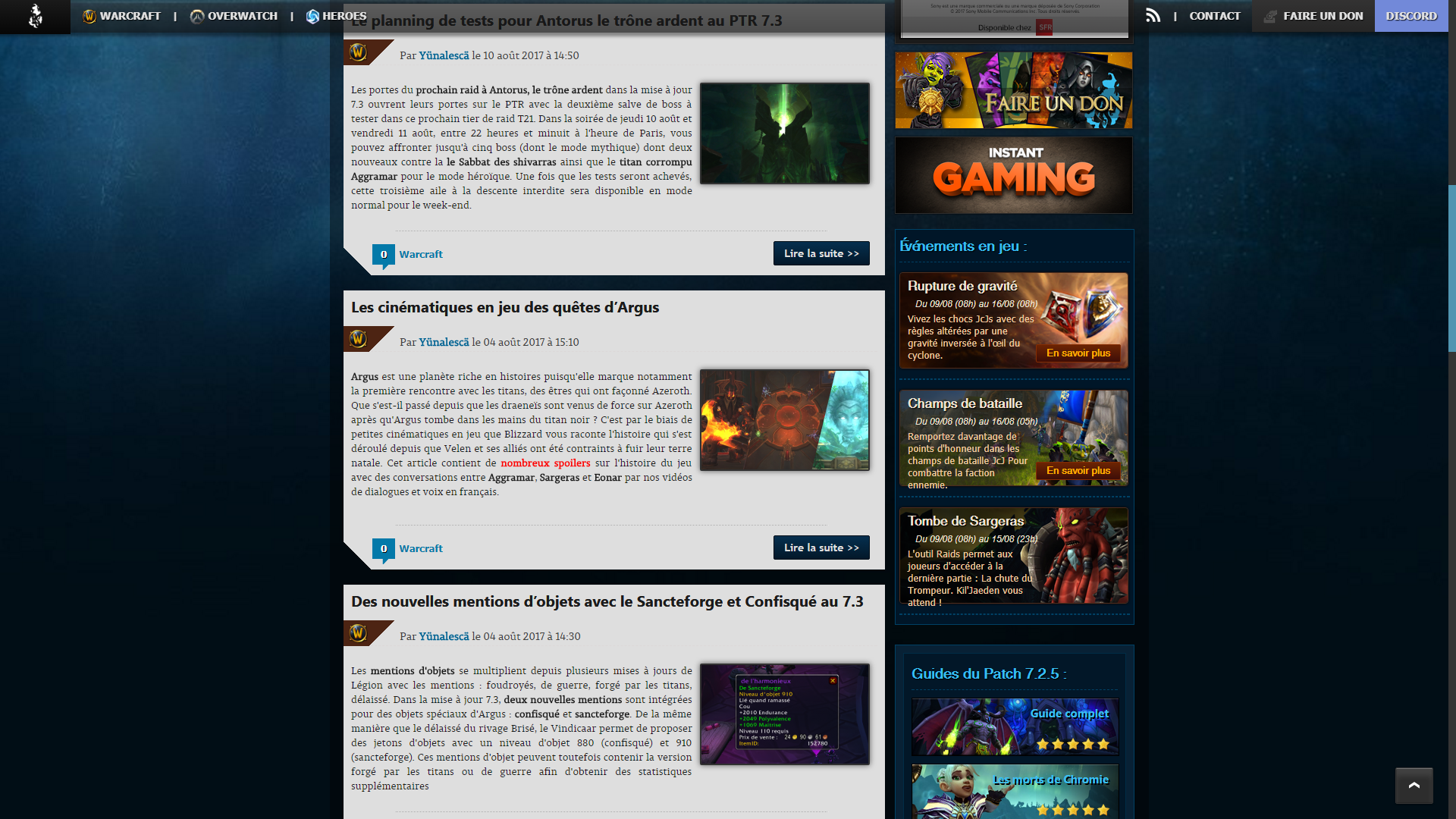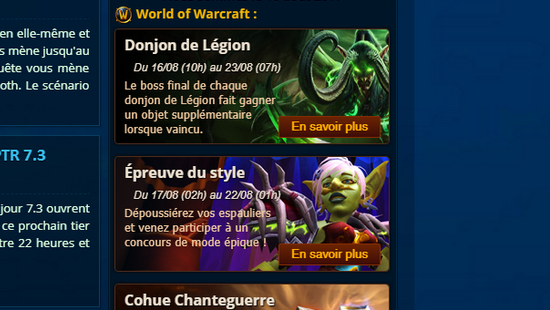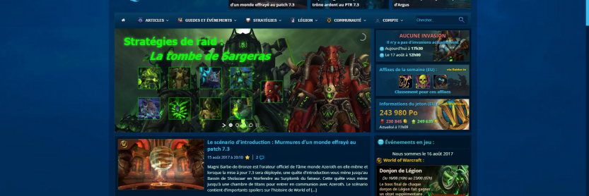 Quelques outils ont été développés pour vous rapprocher davantage de vos jeux favoris et notamment World of Warcraft et Overwatch (pour l'instant !) puisque vous pouvez retrouver des informations en jeu tel que les événements en cours, le prix du jeton actualisé toutes les 30 minutes grâce à la technologie de wowtoken.info, les affixes de la semaine en Europe grâce à la technologie de raider.io ainsi qu'un planificateur d'invasions sur le rivage Brisé. Ces outils vont vous permettre d'avoir vos informations en 1-coup d'œil sur la page d'accueil et en article sur ce qu'il se passe en jeu. Pratique ?
