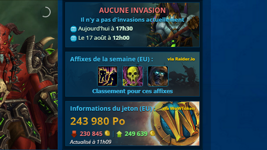 Tout est tres ergonomique et intuitif à mon gout : prix du token, invasion en cours, affixes de la semaine. Tout est à porté de main.