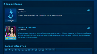 On a encore quelques difficultés à relayer les actualités par manque d’organisation, mais j’essaye de corriger ce détail. De la même manière que les guides de classes, ils seront améliorés et nous allons recruter pour proposer le maximum de guides de classes FR de qualité pour la prochaine extension. Il y’a plein d’évolution à venir en tout cas =)