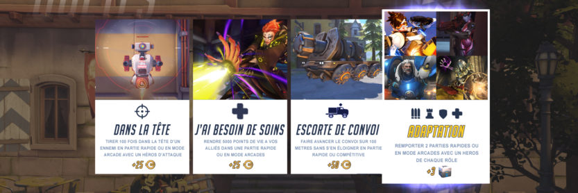 Commentaire des développeurs : Nous souhaitons permettre à la communauté d'essayer de nouveaux rôles sur Overwatch. Les quêtes journalières de héros seront différentes pour chacun afin de créer des compositions plus cohérentes et empêcher d'avoir 5 soigneurs ou 6 attaquants au sein d'une même équipe. Notre système de « matchmaking » est également amélioré pour mettre en relation les joueurs qui ont des quêtes avec des rôles différents.