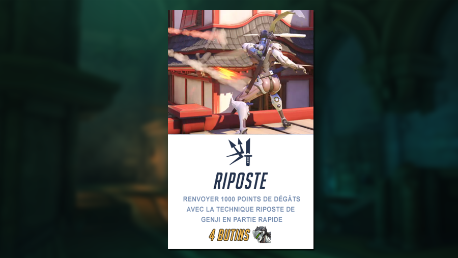 En complément de la limite de trois quêtes journalières maximales, un défi hebdomadaire est proposé chaque semaine avec un objectif encore plus différents. Le défi se concentre principalement sur les aptitudes personnelles à maîtriser chaque héros sur Overwatch. Vous n'aurez qu'une semaine pour réaliser ce défi et obtenir 3 coffres de butin, avant qu'il ne soit remplacé par un nouveau.