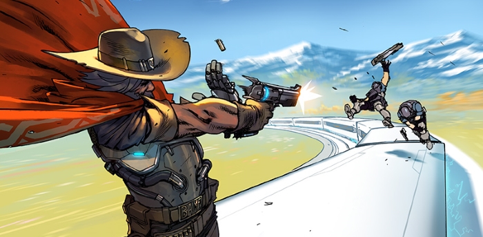 En parallèle des courts-métrages mettant en scène Fatale et Winston pour le moment, six séries de mini-BD seront disponibles gratuitement en prélude avant le lancement officiel d'Overwatch. Dans ce premier numéro intitulé : l'hypertrain sifflera trois fois, vous aurez l'occasion de découvrir le justicier pistolero : McCree sur le site officiel d'Overwatch interactif avec 8 pages d'histoire à propos de ce héros au cours d'une journée virevoltante sur un train assaillit par des bandits. Une version PDF est disponible également pour une lecture sans nuisances externes que vous pouvez exporter sur des supports mobiles.