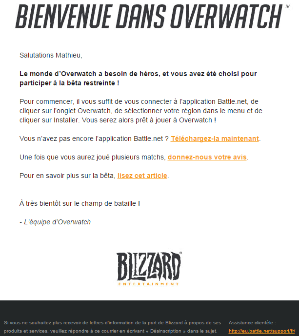 C'est aux alentours de 19h30 que notre compte a été accrédité du sésame et c'était d'une joie tellement intense sur les réseaux sociaux, même si nous avions une énorme pensée positive aux joueurs déçues de ne pas avoir l'accès (patience...), mais puisque nous avions pu télécharger les données d'Overwatch pour préparer le terrain (et surtout par une mauvaise connexion de ma part, où j'aurai du attendre 2h avant d'y jouer...). On s'empresse de lancer Overwatch mais une pointe de rappel est nécessaire :
