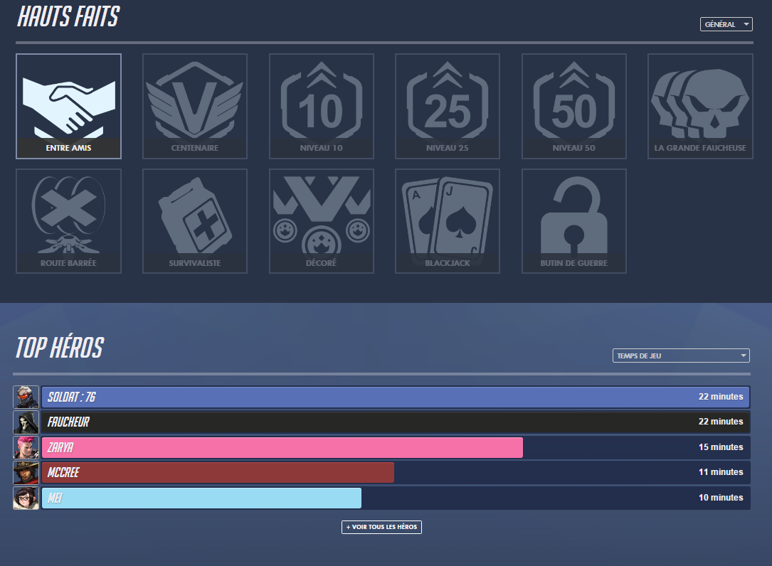 En complément de la boutique officielle pour acheter des coffres de butin, le site officiel se met à jour également pour proposer une armurerie complète afin de consulter la carrière de n'importe qui grâce à son BattleTAG, XBL Gamertag ou PSN ID. Cet outil permet de regarder toutes statistiques disponibles pour vos amis comme les héros le plus joué, nombre de morts au total, les hauts-faits accomplis, le niveau total du compte et parties gagnées avec un site très pratique. Ainsi, en parallèle de cette technologie, nous allons mettre tout en oeuvre afin de pouvoir proposer vos profils armurerie directement sur le réseau comme pour World of Warcraft.