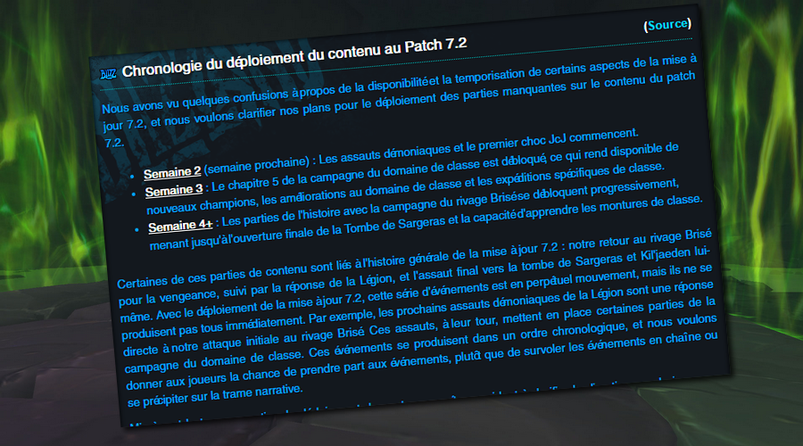 Depuis le lancement de Legion, Blizzard a donné un rythme particulier pour débloquer du contenu au fur et à mesure du temps et c'est davantage le cas avec la mise à jour 7.2 pour la campagne du rivage Brisé. La semaine du 5 avril jusqu'au 12 avril 2017 intègre plusieurs nouveautés comme les invasions de la Légion sur les îles brisées, [...]