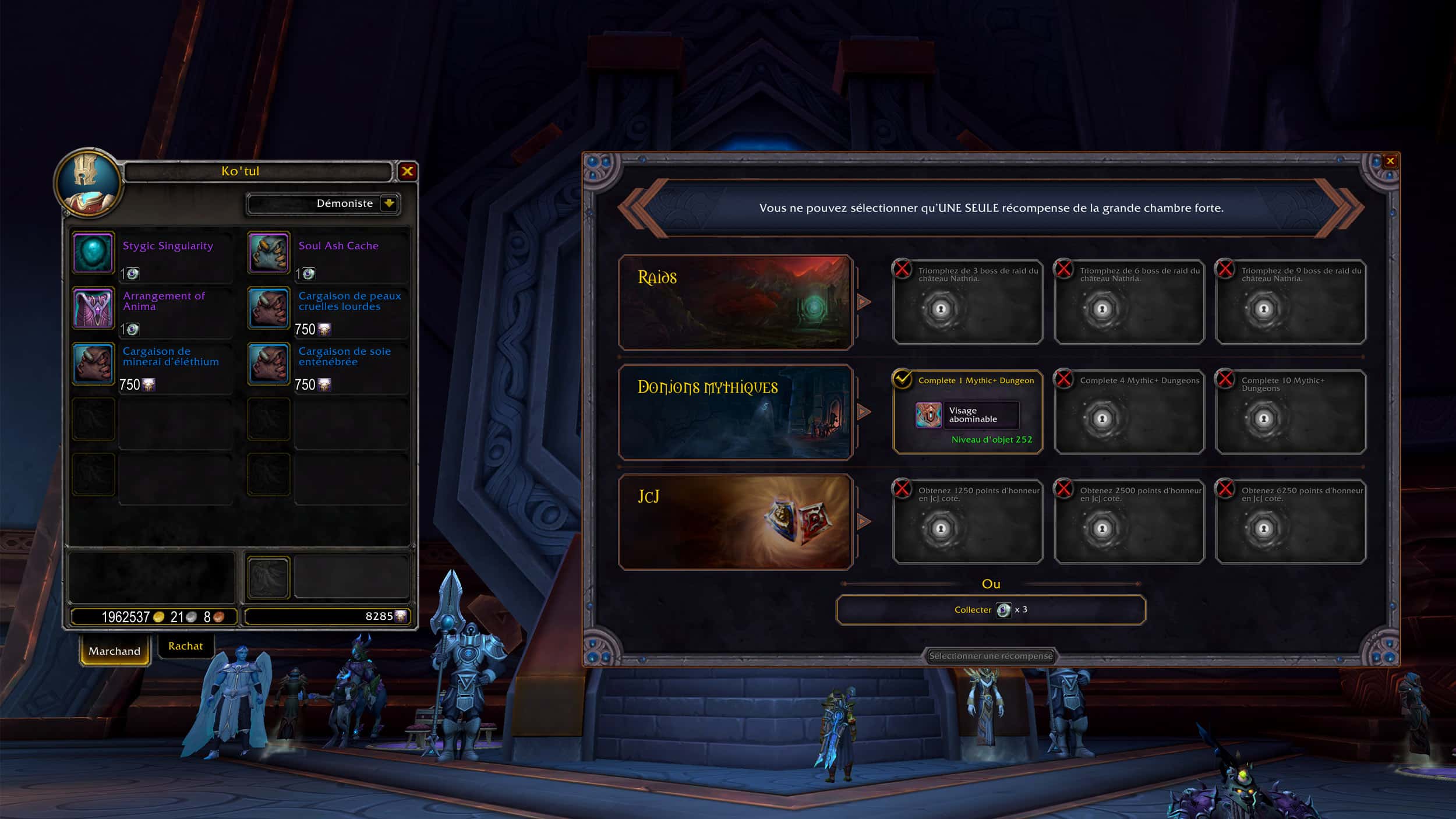 À partir de la mise à jour 9.1, le sanctum de la Domination propose une nouvelle mécanique sur l'équipement avec les châsses de domination. Cet emplacement requiert un éclat de domination pour conférer un effet mineur jusqu'à activer un ensemble dans l'Antre et Tourment.