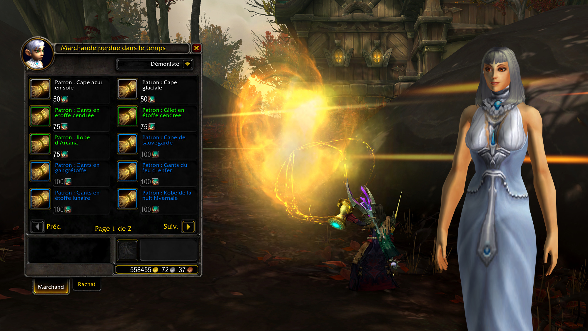 Dans la mise à jour 8.1.5, les couturiers de Battle for Azeroth pourront découvrir une marchande perdue dans le temps à l'aide de l'outil de travail du Fil synchrone afin de sceller les failles temporelles sur Kul Tiras et Zandalar. Cette marchande perdue dans le temps propose plusieurs anciennes recettes pour des nouvelles apparences.