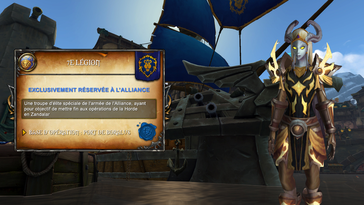 Battle for Azeroth introduit une nouvelle réputation neutre avec les champions d'Azeroth, une fois que les expéditions sont débloquées à votre personnage. Cette faction propose quatre type d'expéditions différentes dispersées dans les six zones sur Kul Tiras ou Zandalar avec un objectif principal : panser les blessures d'Azeroth.