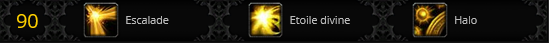| Quand vous infligez des dégâts directs avec Châtiment ou Flammes sacrées, vous bénéficiez d’Evangélisme. Cumulable jusqu’à 5 fois. Dure 20s. Consommé par le sort Archange pour augmenter les soins prodigués. | |