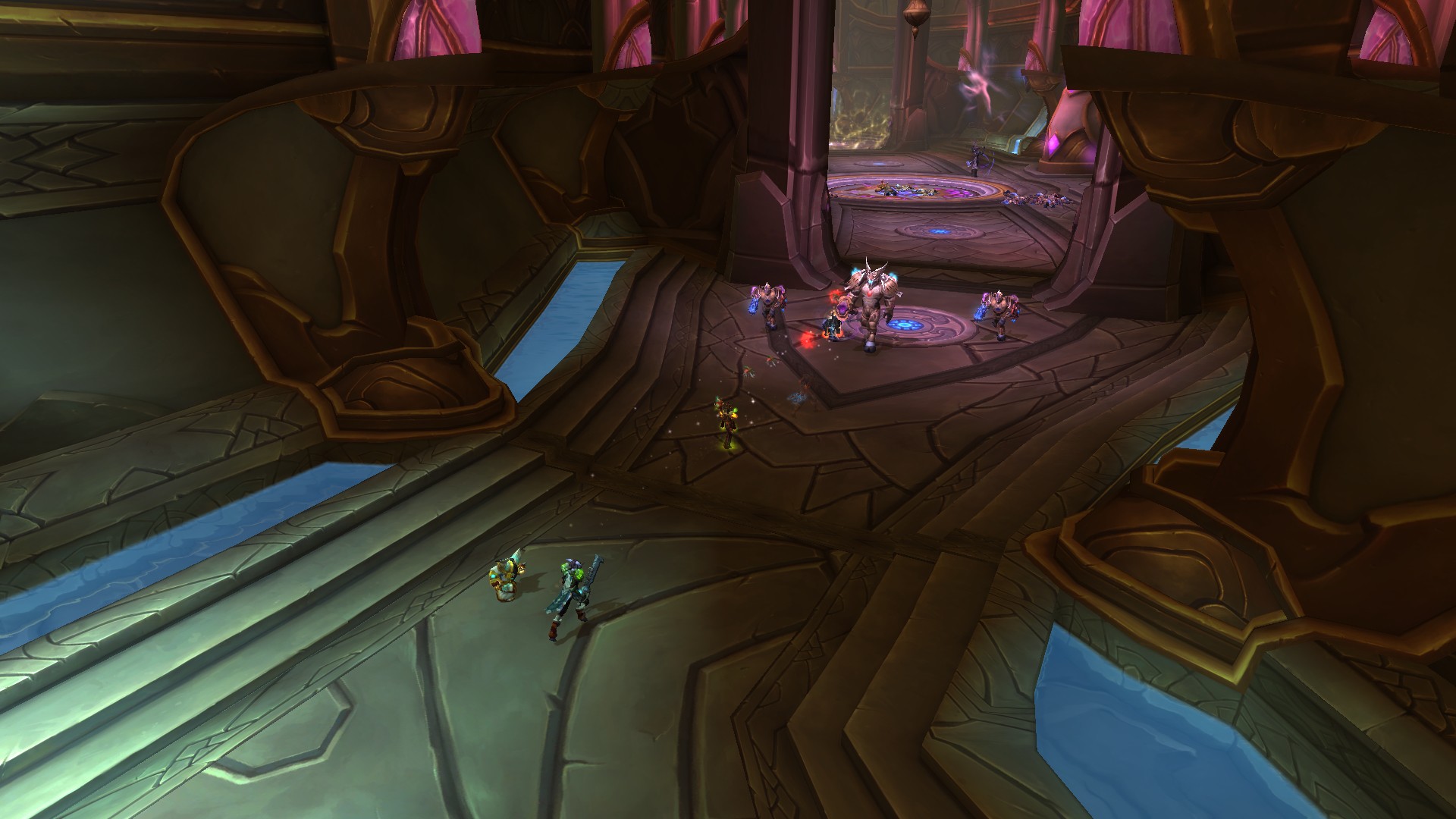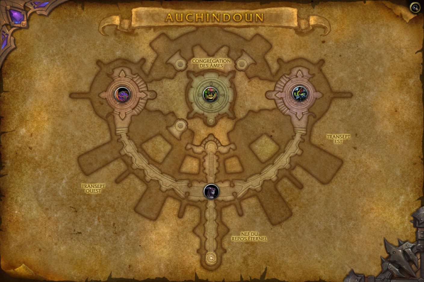 Le donjon d'Auchindoun dispose que d'un seul niveau et vous êtes amenés par commencer du côté gauche de l'instance pour vaincre Kaathar le Vigilent. Une fois ceci-fait, vous devez revenir sur vos pas au centre du donjon pour faire face à la Lieuse d'âme Nyami. Puis, une fois qu'elle a été vaincue, vous devrez vous diriger du côté droit pour rendre visite à Azzakel. Et enfin, lorsqu'il est vaincu, un téléporteur se débloque dans à l'étage inférieur pour se rendre aux quatre coins de la pièce centrale pour ainsi affronter le boss final : Teron'gor.