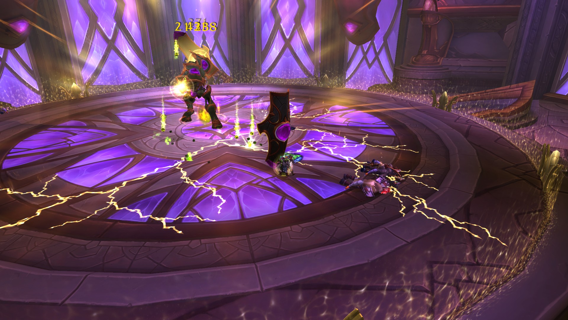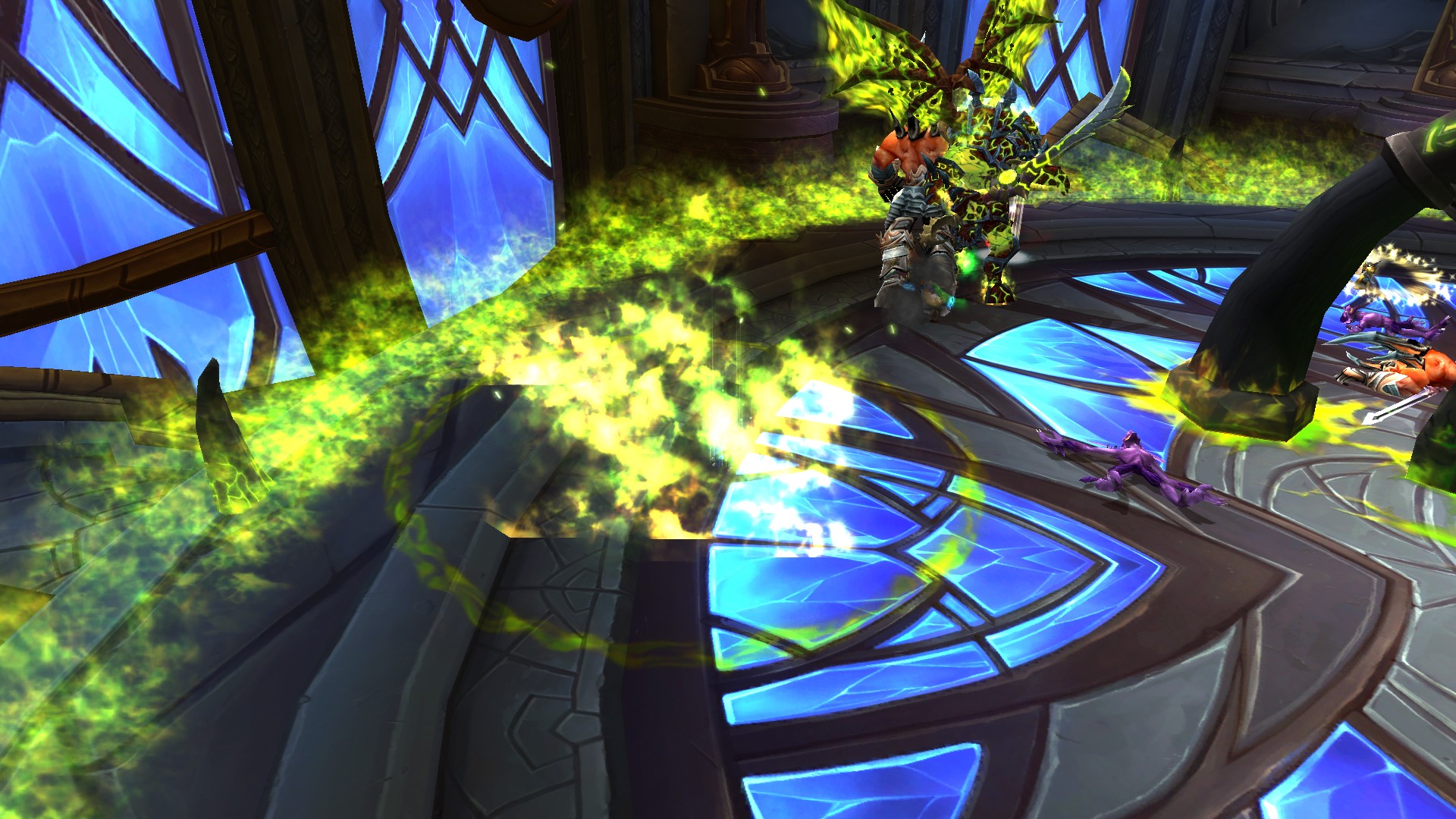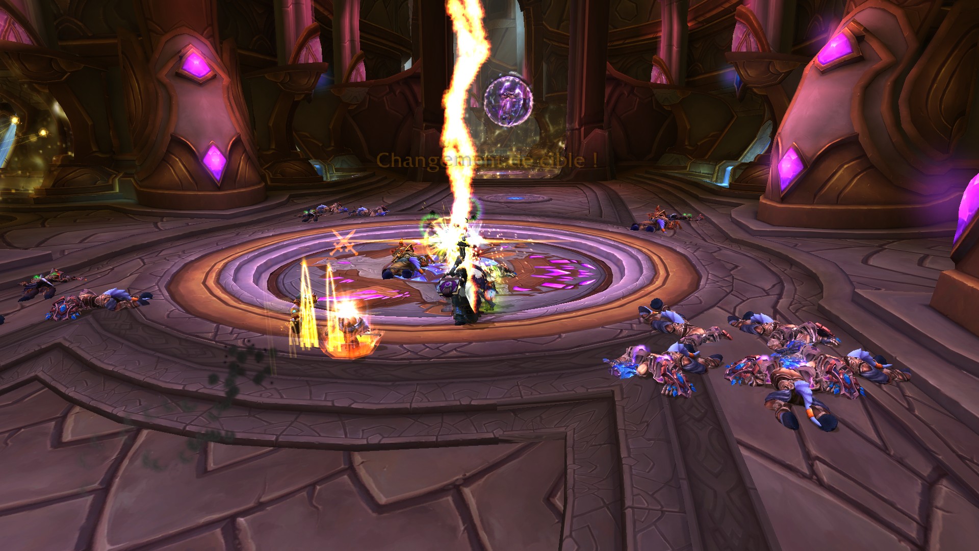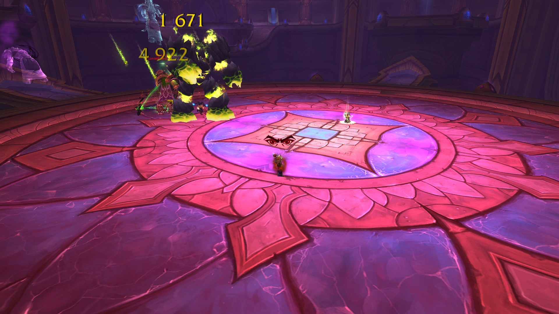 Fureur rayonnante crée des prismes d'énergie sacrée jaunes qu'il faut absolument éviter puisque la fureur inflige des dégâts de Sacré à son contact.