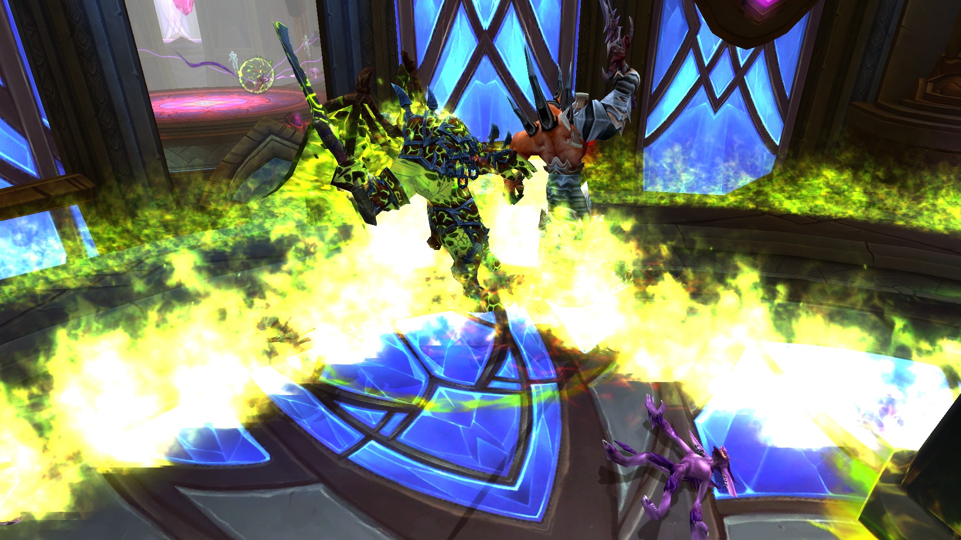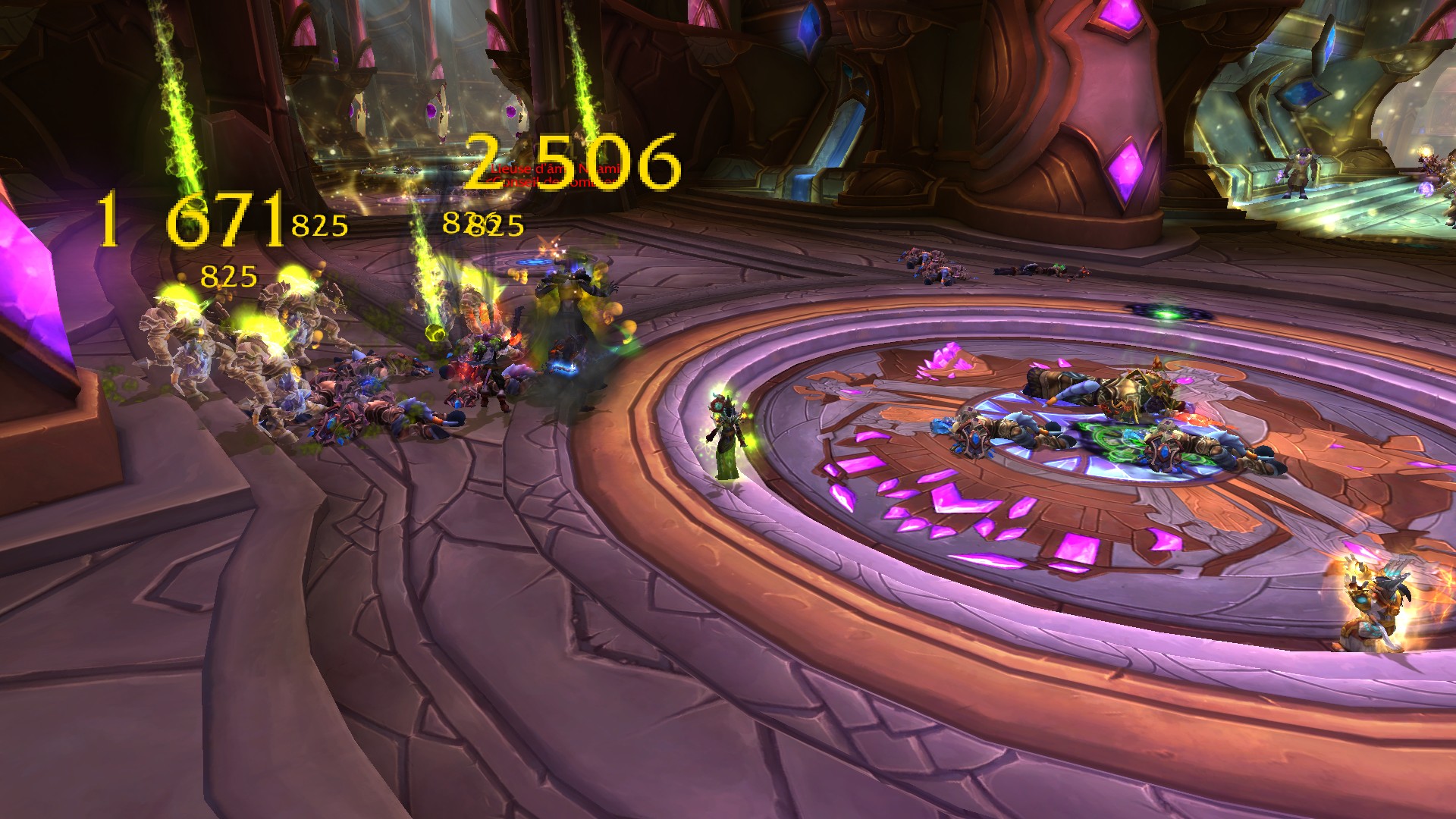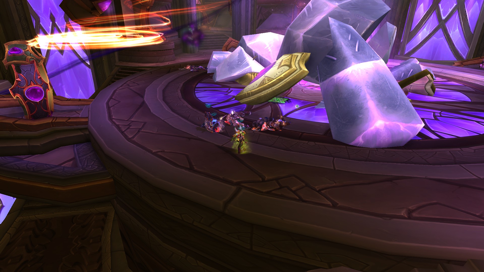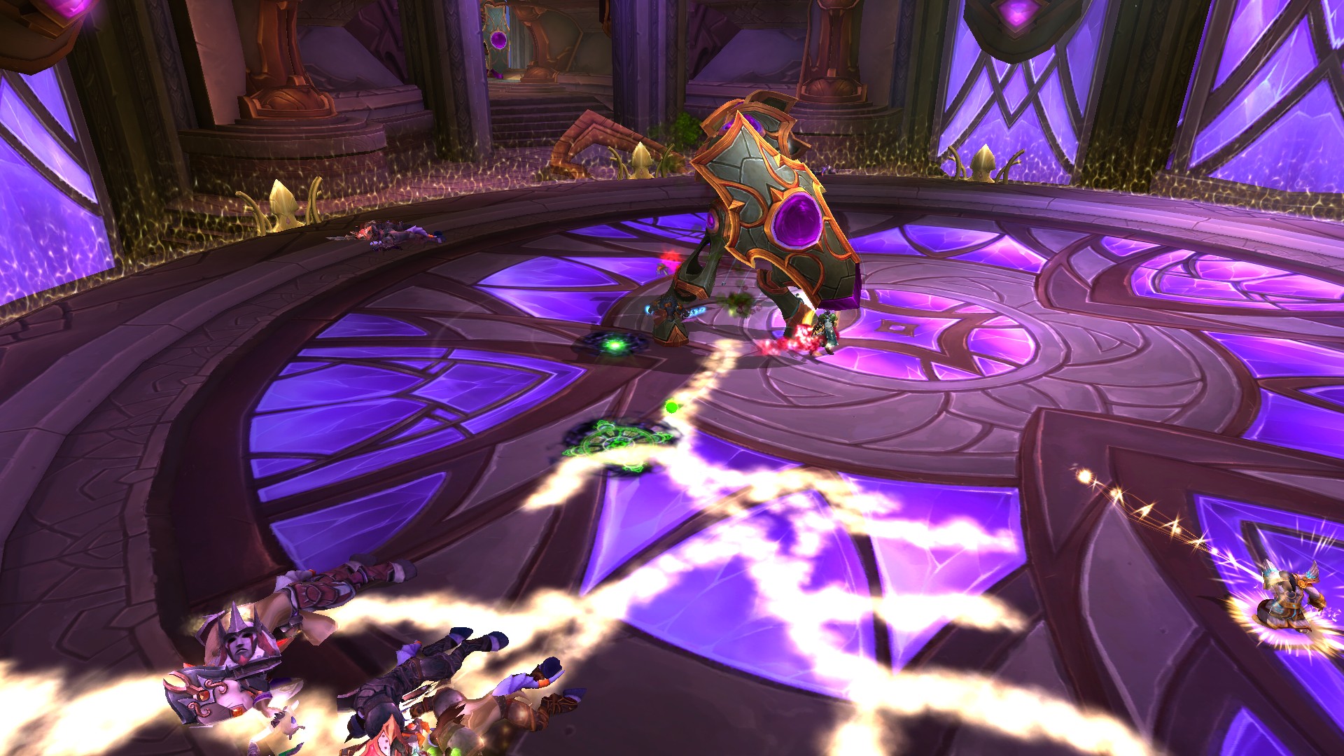 Fureur rayonnante crée des prismes d'énergie sacrée jaunes qu'il faut absolument éviter puisque la fureur inflige des dégâts de Sacré à son contact.