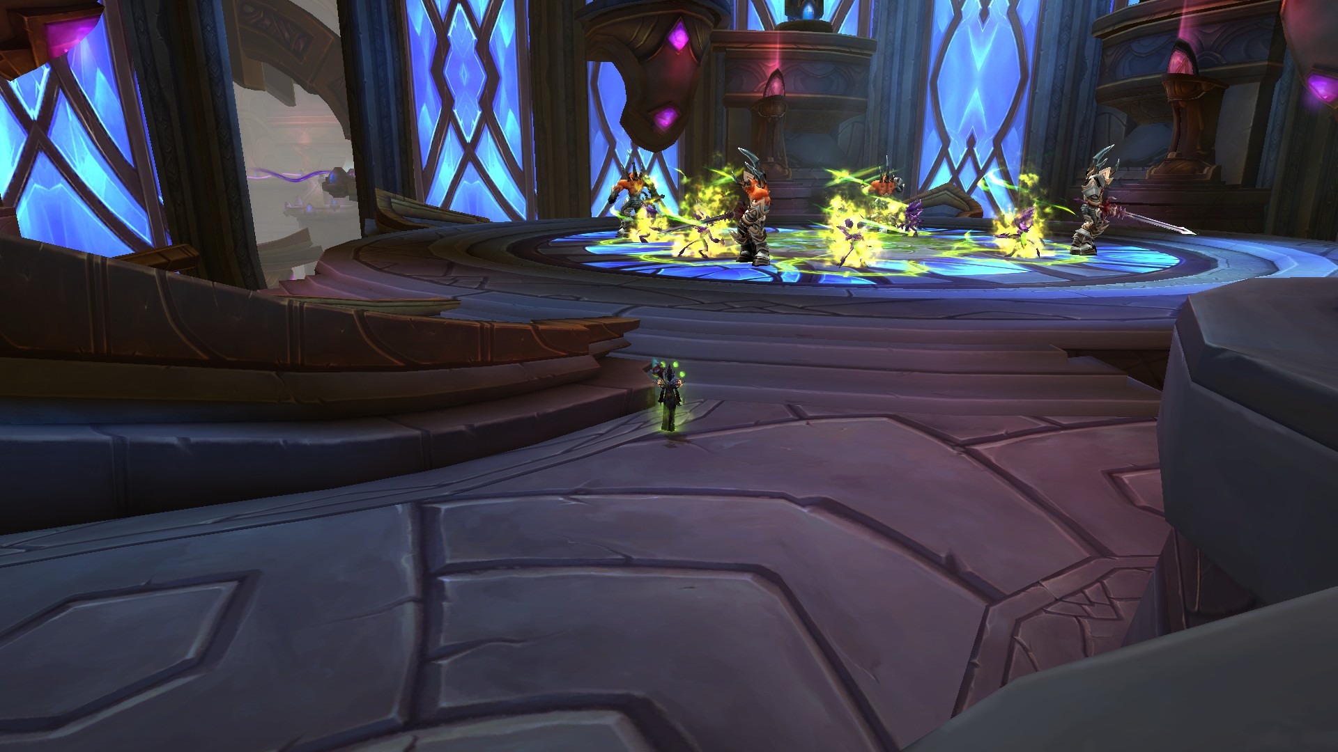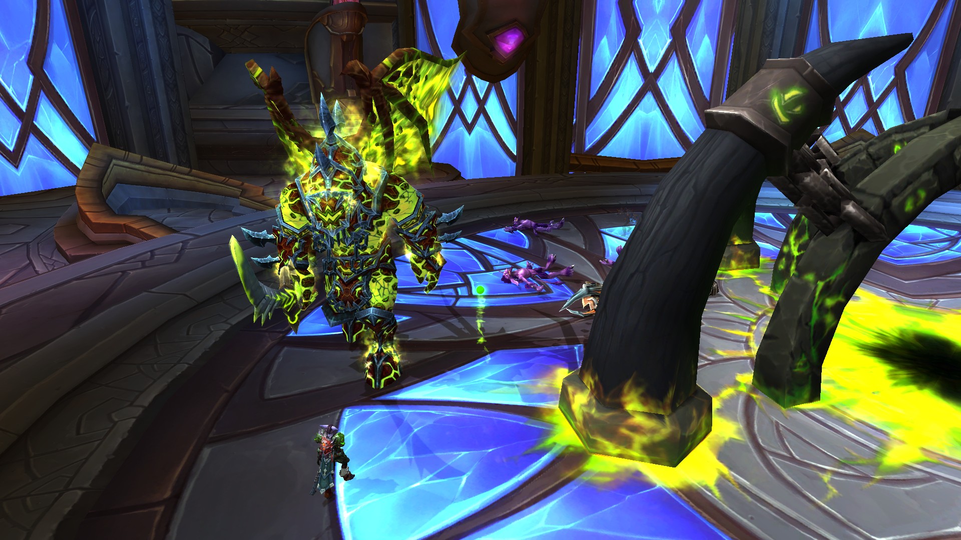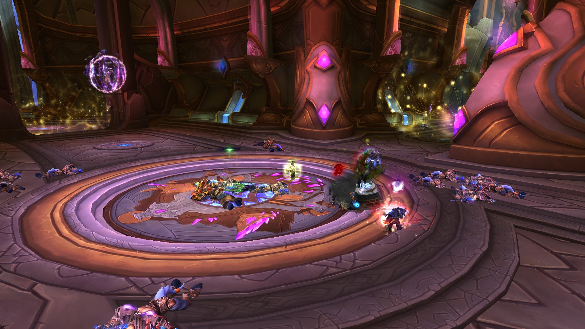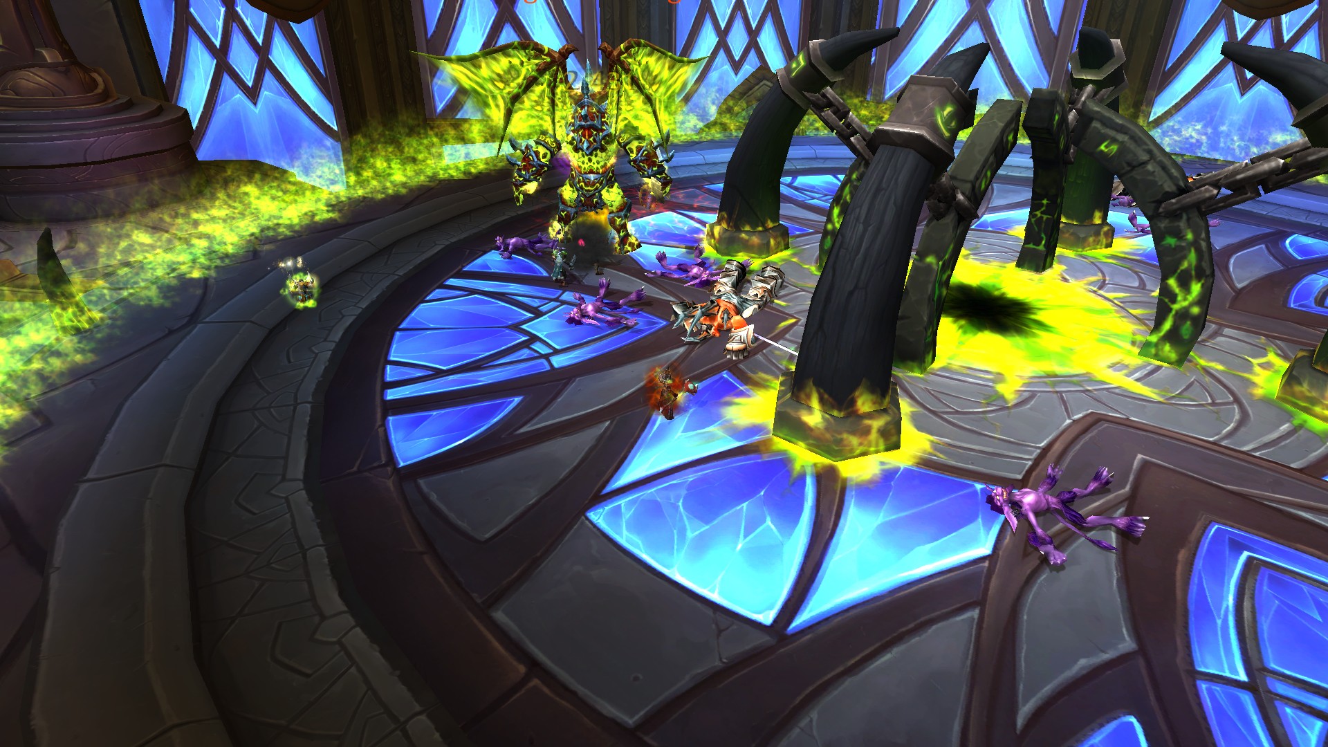 Fureur rayonnante crée des prismes d'énergie sacrée jaunes qu'il faut absolument éviter puisque la fureur inflige des dégâts de Sacré à son contact.