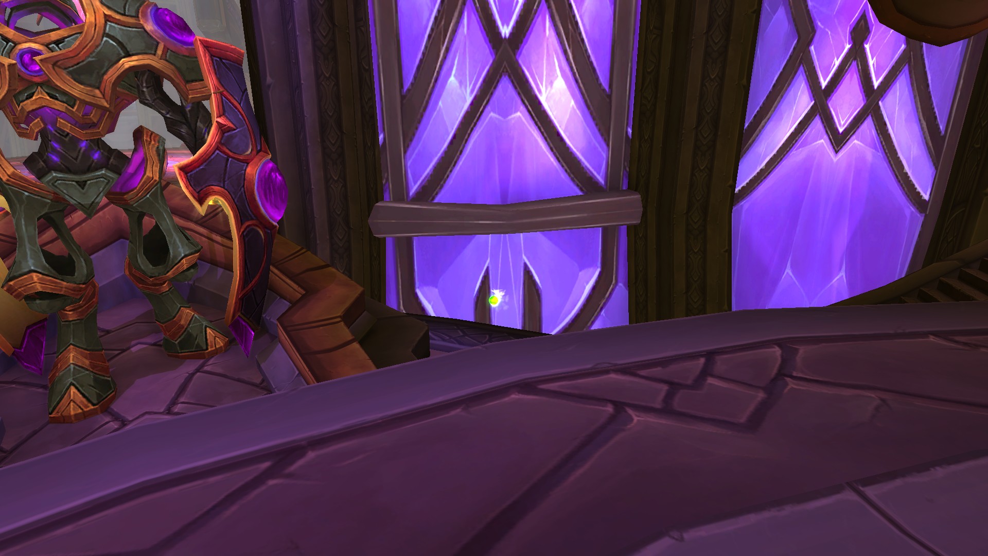 Les plus grands guerriers draeneï qui s'apprêtent à rejoindre l'au-delà peuvent accepter de rendre un ultime service à leurs compatriotes : celui d'occuper les assemblages blindés assurant la protection éternelle d'Auchindoun et de la civilisation draeneï en Draenor. Ce vigilent-ci a été chargé de défendre le dernier cristal qui alimente le bouclier autour d'Auchindoun.