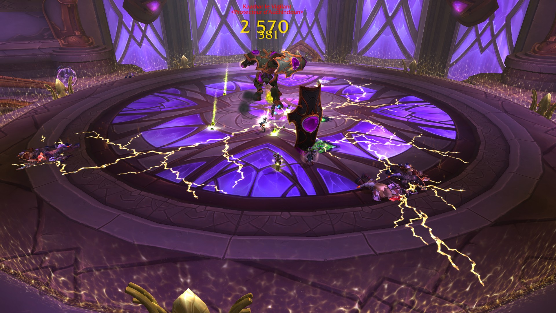 Bouclier sacré à l'emplacement d'un personnage-joueurs dont celui-ci subis des dégâts de sacrés à l'impact dans une zone de 5 mètres. Tous les joueurs, y compris le tank, doivent se rapprocher progressivement vers le bouclier posé sur le sol pour s'y cacher, et ainsi se protéger des pulsations sacrées de la lumière consacrée de Kaathar pour éviter les dégâts lorsque sa canalisation débute. Pensez à rafraîchir vos effets périodiques sur le boss avant de se cacher pour gagner quelques dizaines de dégâts. Puisque le