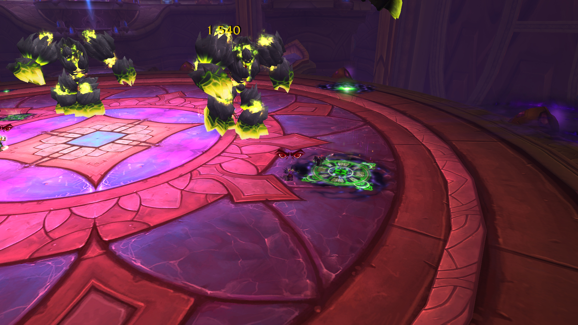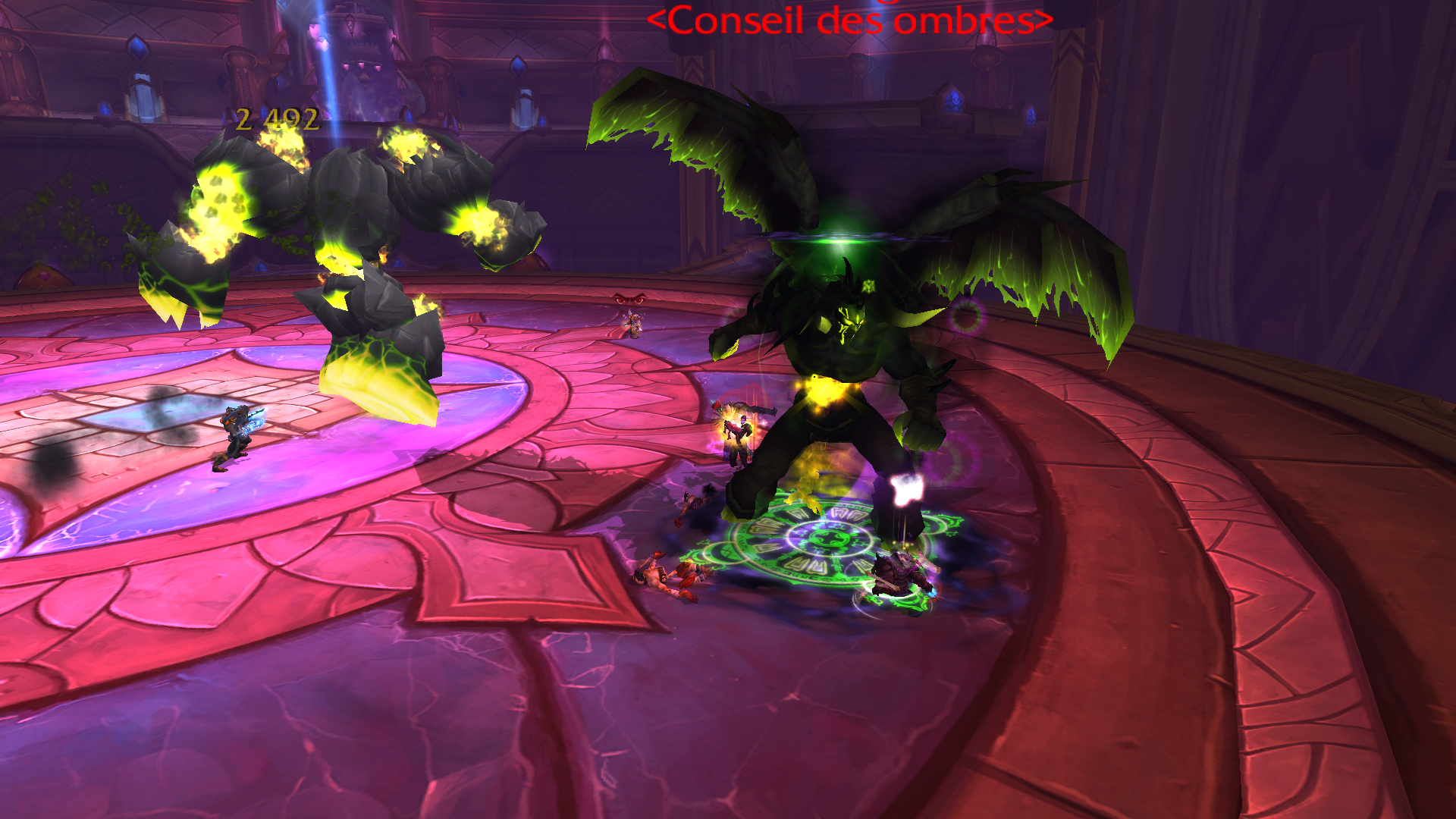 Malédiction d'épuisement (posé régulièrement sur un joueur du groupe), réduit la vitesse de vos déplacements, puisque vous n'aurez peu de techniques à éviter, il n'est pas primordial de dissiper cette technique. (Le racial humain, gnome, main de sacrifice fonctionnent)