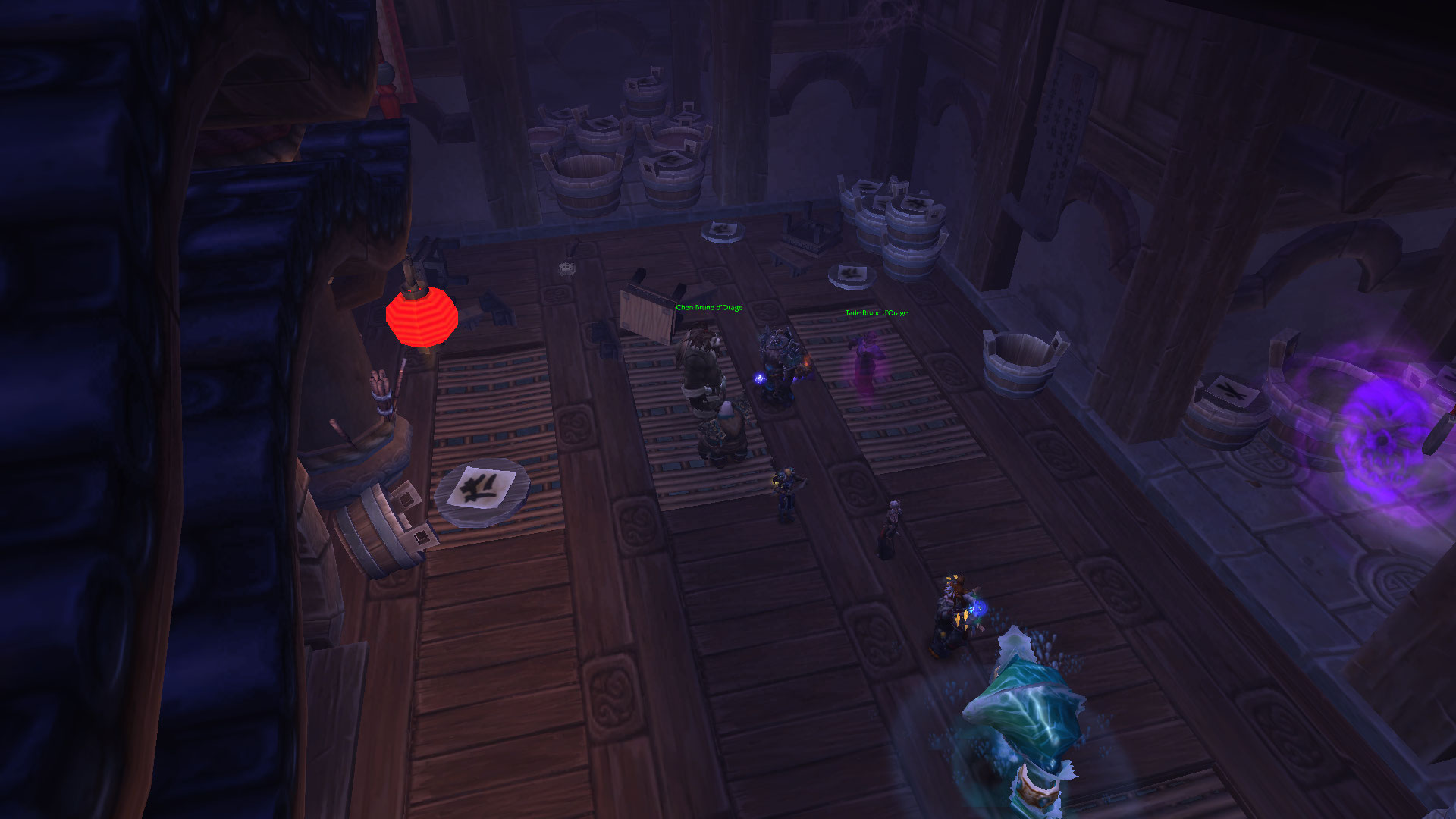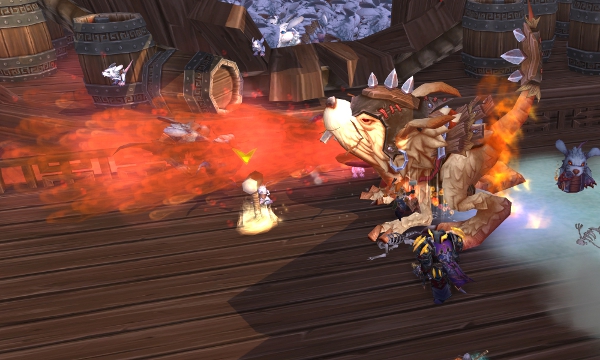 Le principe sera de diriger le tonneau (tout en évitant vos amis) vers Ouk-Ouk, la bière va jaillir et exploser du fût ce qui augmente les dégâts qu'il va subir de 10%. Pour rendre la tâche plus simple, n'hésitez pas à répéter cette manœuvre autant de fois que nécessaire (Vous pouvez également faire du DPS en même temps que vous dirigez le tonneau, donc les classes à distances sont favorisés pour cette tâche particulière)