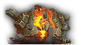 Barrage de magma : De la lave éclabousse le sol et inflige 4 000 | 28 000 | 42 000 points de dégâts de Feu toutes les 2 s aux ennemis se trouvant dans la flaque de lave.