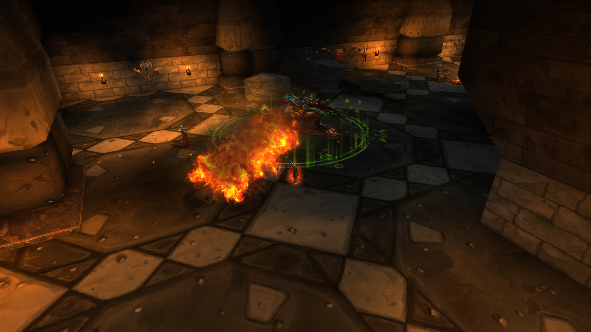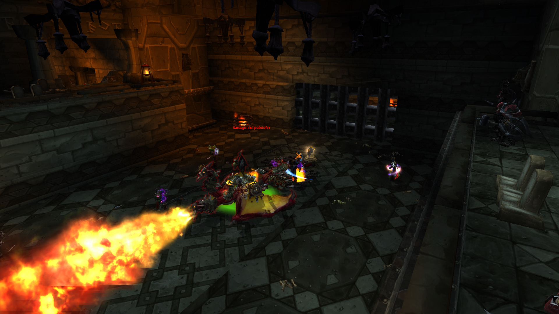 Souffle brûlant. Imaginez que la salle est découpée en neuf carrés puisqu'un drake souffle sur un tier de la plateforme que ce soit horizontalement où verticalement. Ainsi, à cause de la gestion des chevaucheurs et du retour de Zaela, les proto-drake peuvent être problématique sur vos déplacements mais grâce à un jeu de caméras, il est ainsi possible d'anticiper les prochains souffles et se déplacer en conséquence. Zaela revient sur une base fixe de temps et dispose des même capacités à gérer jusqu'à sa mort mise à part la gestion de l'évitement des souffles.
