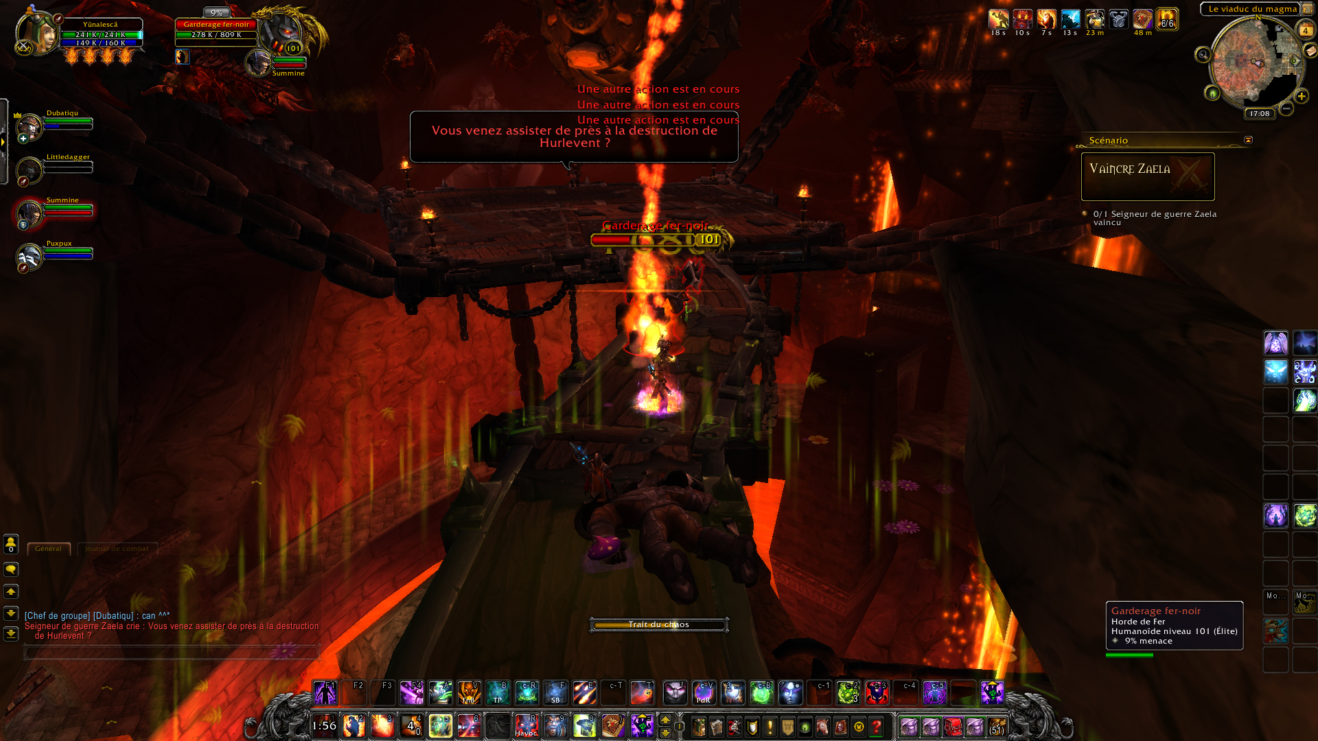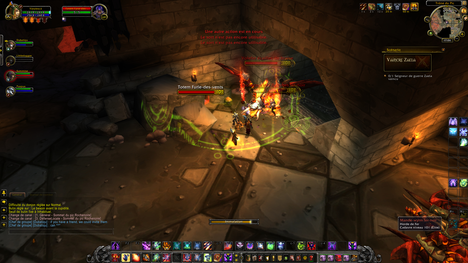 Cyclone fer-noir : un personnage-joueur aléatoire (tank et soigneur compris) seront fixés pendant 6 secondes et Zaela tente de se rapprocher au corps à corps avec son tourbillon. Bien entendu, vous devrez kite le boss pendant ces quelques secondes en évitant de se faire rattraper. Ceci ne devrait pas être problématique puisque le boss se déplace moins vite pendant le tourbillon. Vos DPS de mêlées devront malheureusement s'en écarter puisque le cyclone inflige trop de dégâts.