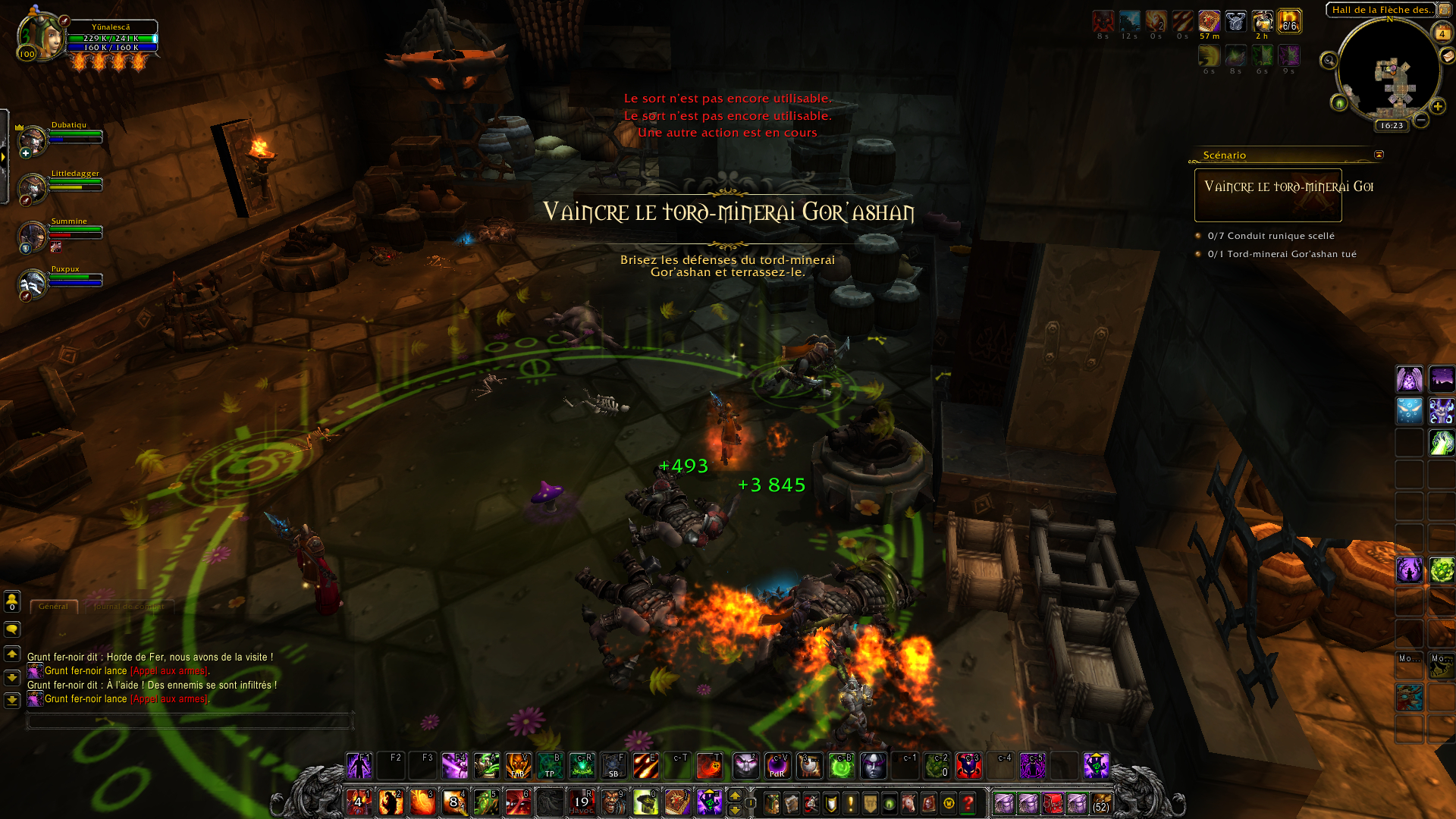 Cacophonie du tonnerre : Grâce à l'énergie conférée par les conduits runiques, Gor'ashan déchaîne la foudre et inflige 15 000 | 30 000 | 40 000 points de dégâts de Nature aux ennemis proches.
