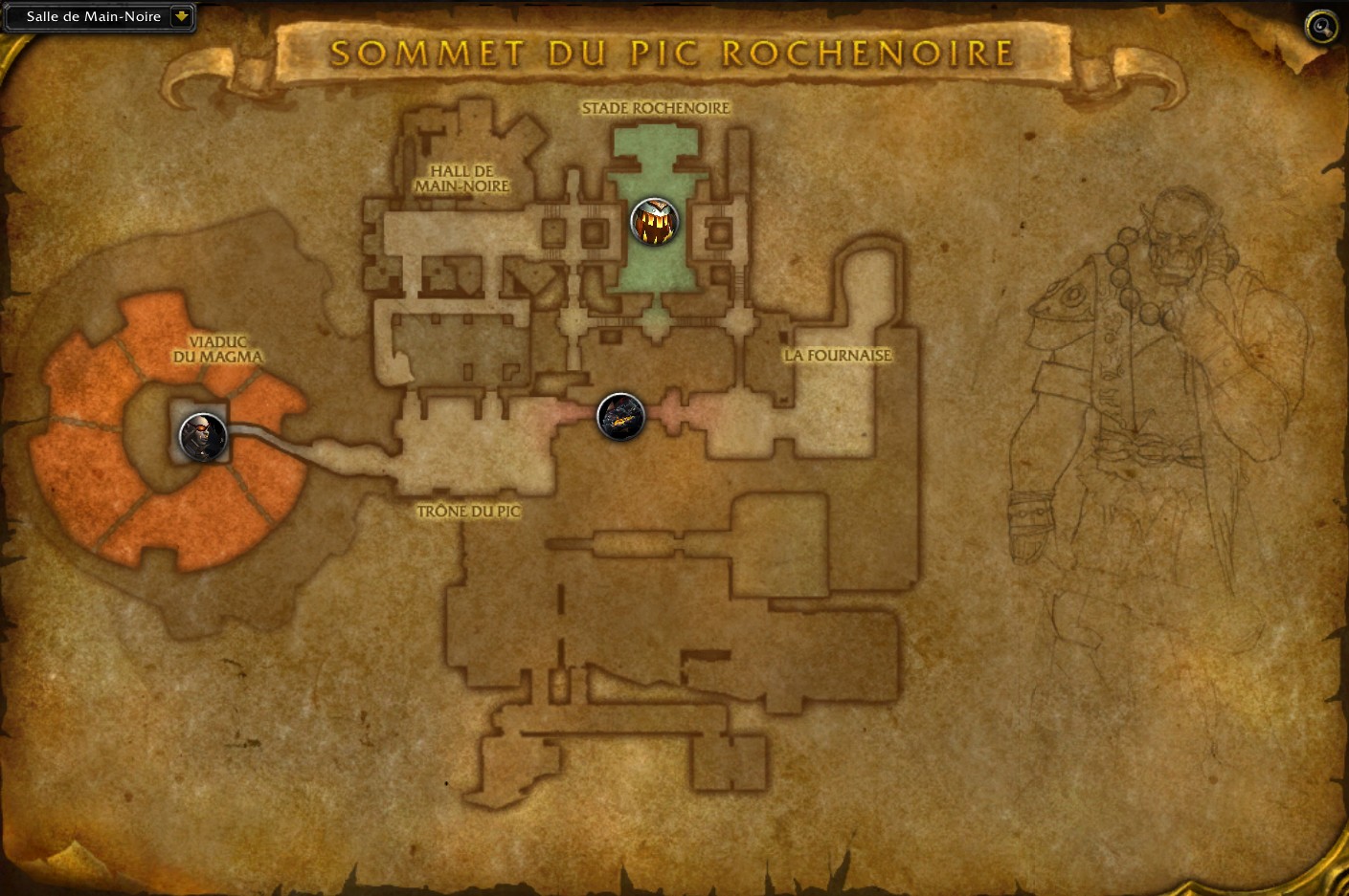 L'histoire de cette imposante forteresse est longue et complexe. Creusé dans le mont Rochenoire par le clan des Sombrefer, il y'a plusieurs siècles, puis capturé par le dragon noir Nefarian et sa couvée, le sommet du pic Rochenoire abrite maintenant l'avant-garde marchefer. Tandis que se poursuivent les préparatifs visant à faire du pic la tête de pont de l'invasion d'Azeroth, la Horde de fer développe un plan de secours terrifiant : une arme de destruction massive en plein coeur du mont Rochenoire.