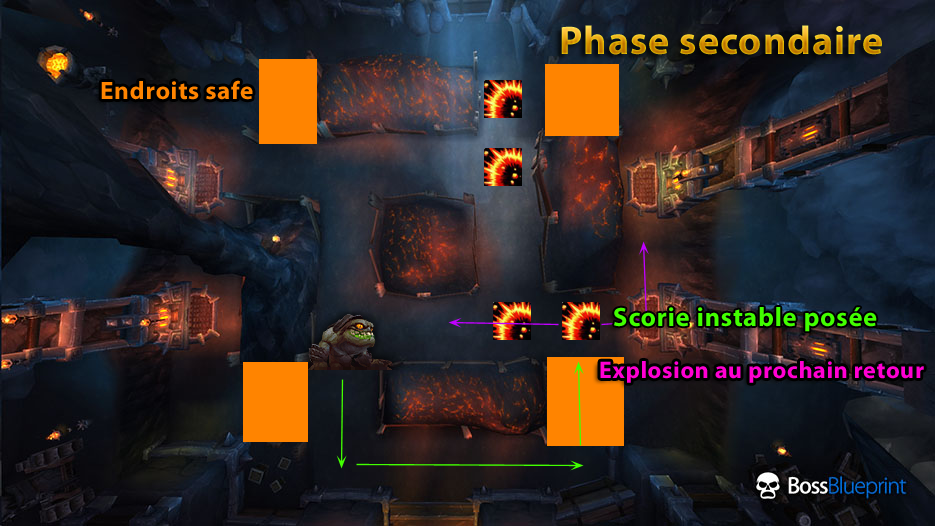 : La scorie instable explose et envoie dans toutes les directions des vagues de feu qui infligent 77 500 points de dégâts de Feu. Toute scorie instable touchée par une vague explose.