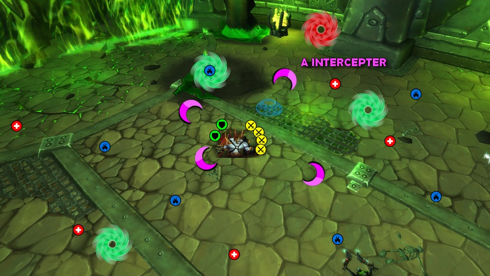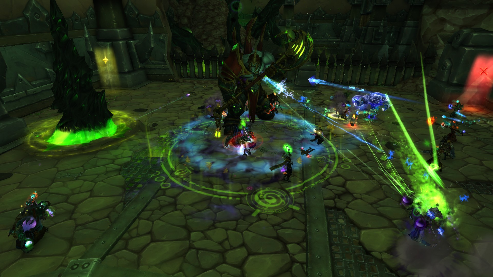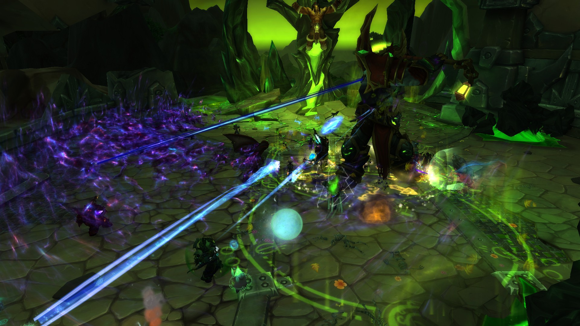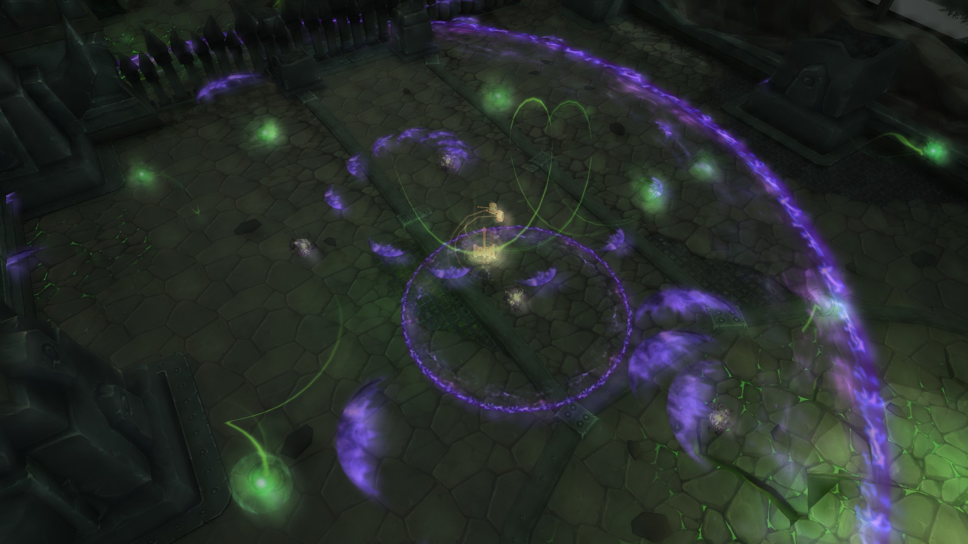 Gangrecristaux. De la même manière que l'implosion d'énergie de Malkorok au Siège d'Orgrimmar, les personnages-joueurs doivent être éparpillés autour du boss afin d'être prêt à absorber une