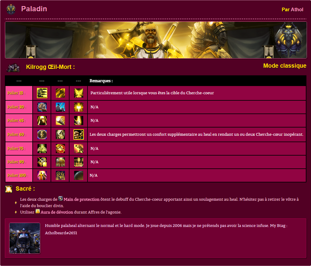 - Mise à jour 08/09 : Ajout d'un tips de paladin par Athol
