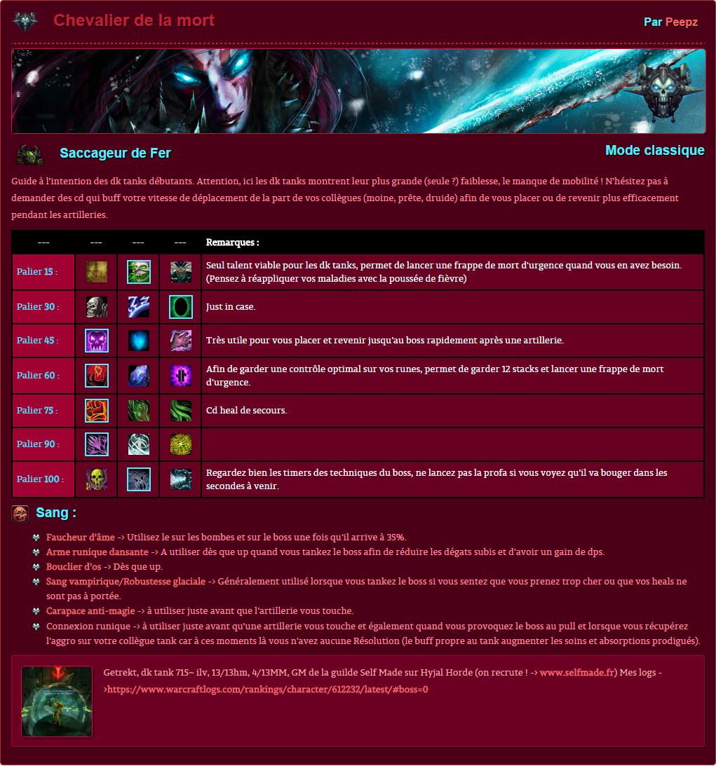- Mise à jour 02/10 : Ajout d'un BlizzTips par Peepz sur le Chevalier de la mort sang.