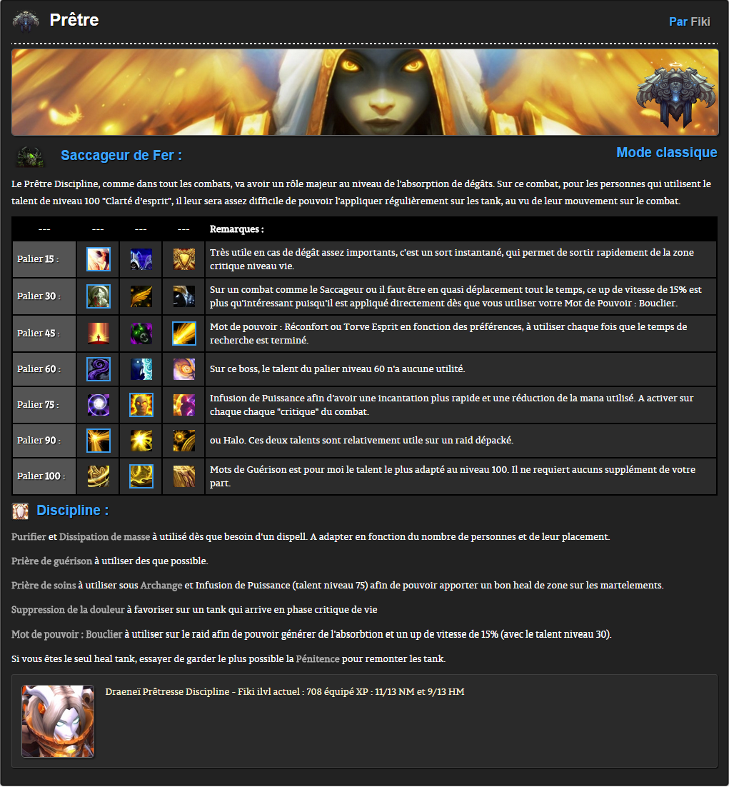 - Mise à jour 02/10 : Ajout d'un BlizzTips par Fiki sur le Prêtre Discipline.