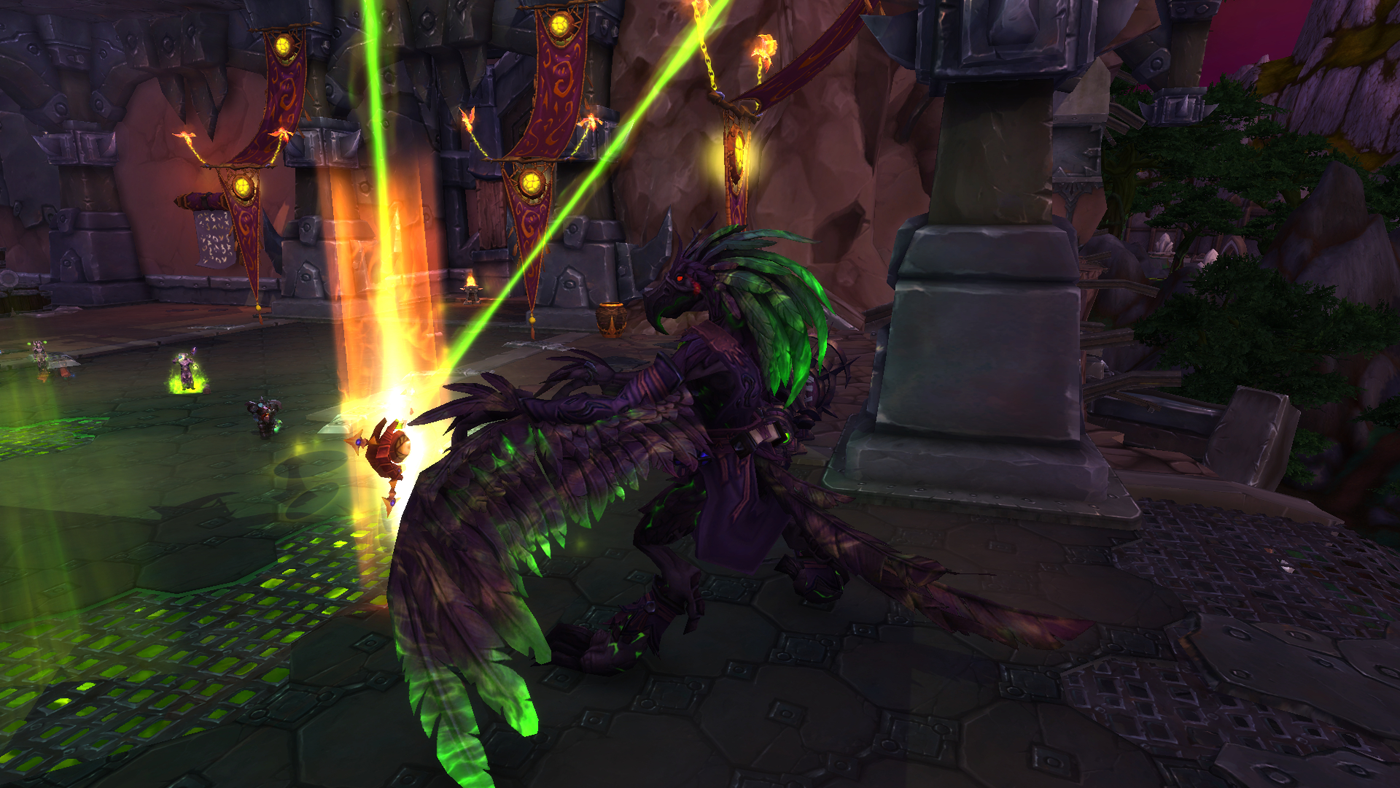 Œil d'Anzu pour contrer certaines techniques néfastes du Seigneur de l'ombre Iskar. L’œil d'Anzu est une balle qui se récupère en cliquant simplement dessus dès l'engagement du boss dont une barre d'ExtraActionButton se déverrouille pour pouvoir lancer cet œil à un allié ciblé. Toutefois, si l’œil n'est pas récupéré par un membre du raid : des dégâts de Feu croissants avec