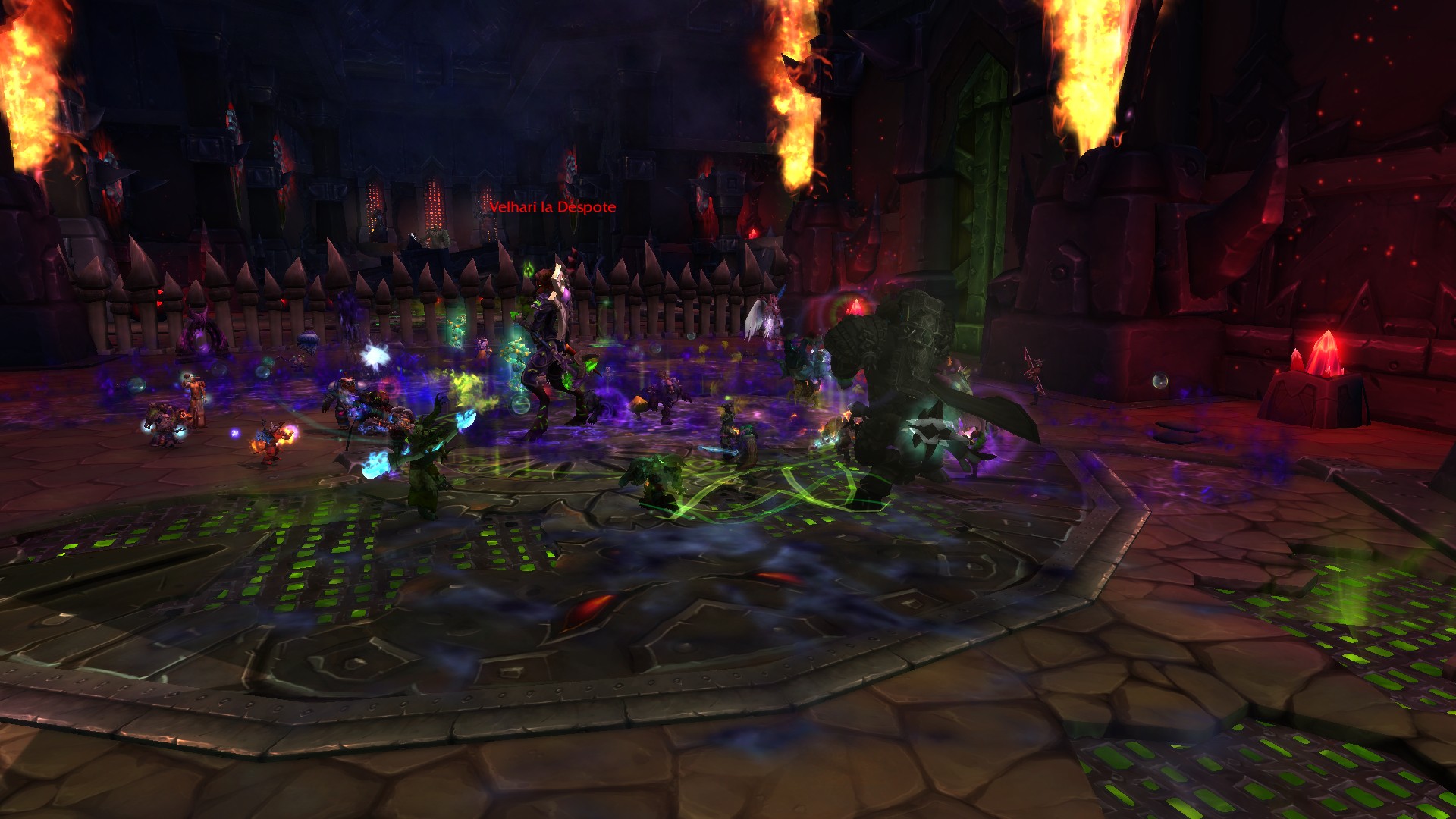 Le combat contre Velhari la Despote à la Citadelle des Flammes infernales est basé sur trois phases à 100%, 70% et 40% marquées par le changement de ses trois auras