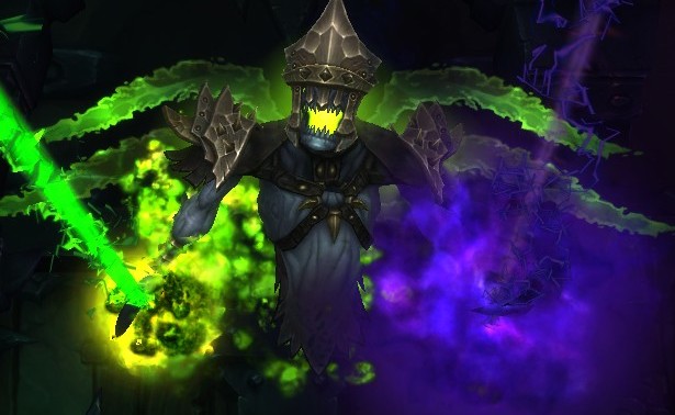 Xhul'horac, corrompu par l'énergie gangrenée, invoque des serviteurs de la Légion et attaque à l'aide de la magie gangrenée.