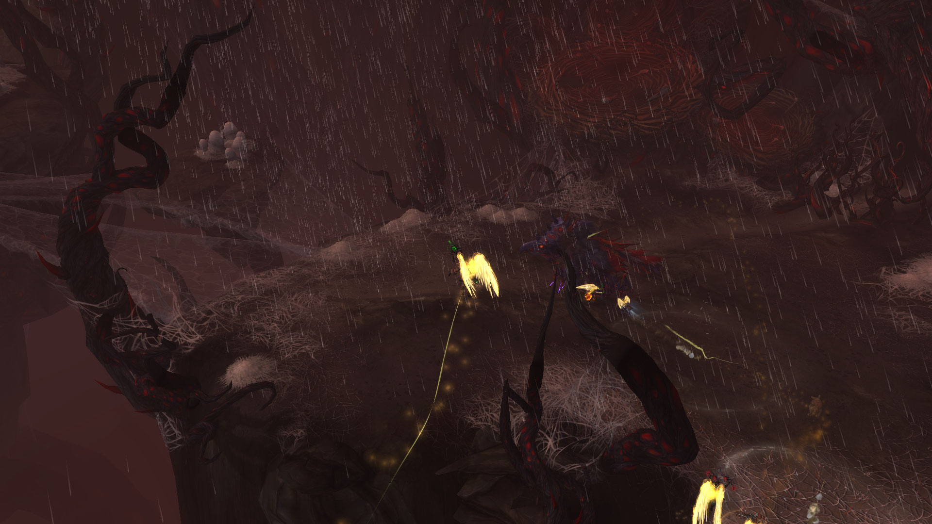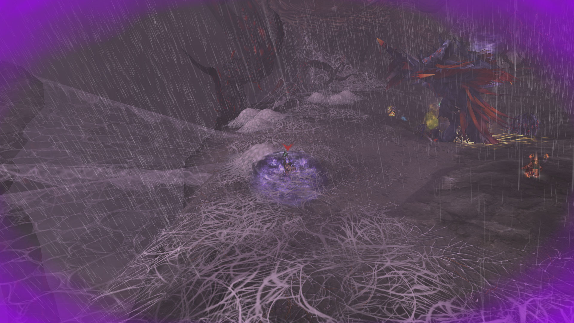 Accumulation nébuleuse qui lui permet de s'envoler vers une autre plateforme. En terme de positionnement, il est conseillé d'avoir deux groupes : 1 groupe distance & soigneurs | 1 groupe de mêlée & tank pour gérer au mieux les capacités du boss et notamment sa principale mécanique :