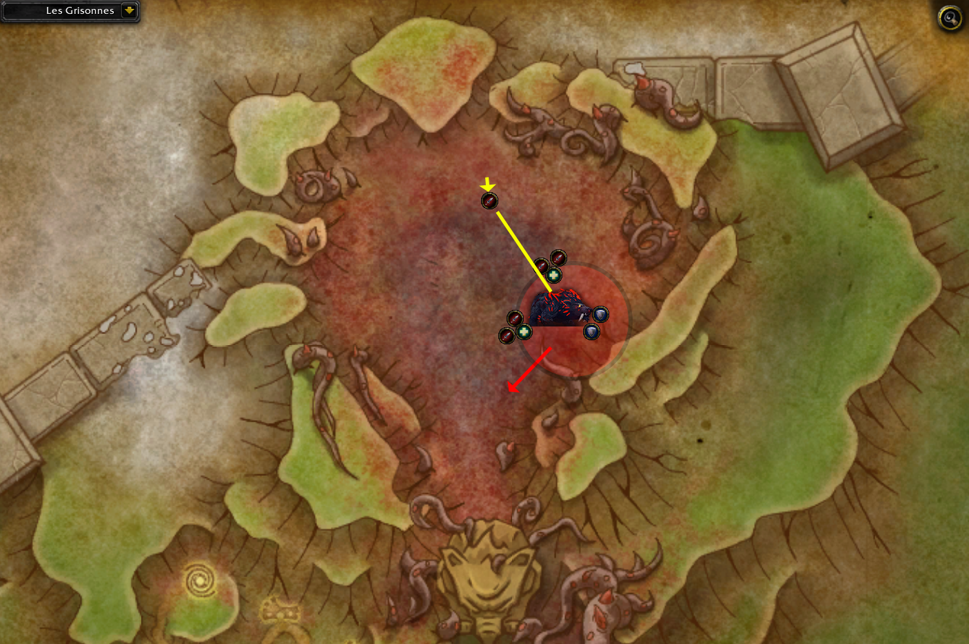 Cacophonie du Cauchemar en héroïque. - Flèche jaune : Gestion du