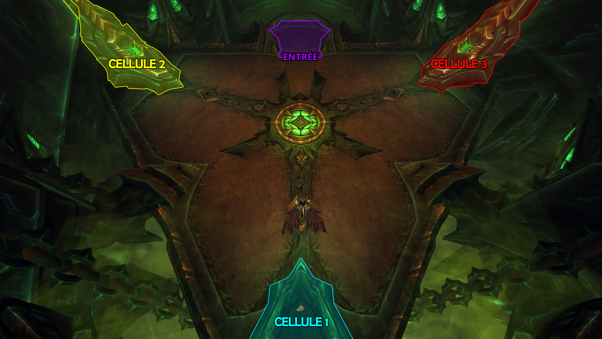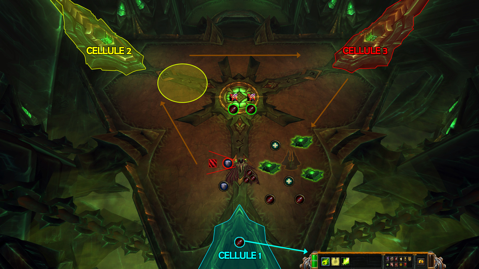 Impulsion chaotique. Il est important de l'utiliser principalement contre le commandant ennemi afin de tirer 3 salves de projectiles pour augmenter les dégâts subis de toutes les sources de 1%, jusqu'à un maximum de 15%. Malgré que le créneau est parfois serré, cette impulsion d'énergie est primordiale pour écourter au maximum la durée du combat avec cette augmentation de dégâts. Le rôle du personnage-joueur dans le cellule est surtout de se servir efficacement de la deuxième technique pour contrer les effets majeurs utilisés par les commandants adverses : les explications détaillées sont disponibles dans chaque phase. Aux alentours de 35 à 40 secondes à l'intérieur de la cellule, il est important de sortir pour ne pas mourir des dégâts massifs subis, n'hésitez pas à vous servir d'addons pour améliorer le rendu visuel de votre survie ou notre WeakAura.