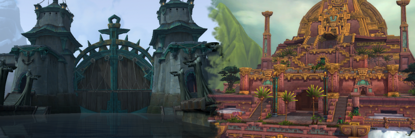 Chaque faction possèdera leur propre capitale sur les continents de Kul Tiras et Zandalar avec Boralus pour l'Alliance et Dazar'alor pour la Horde dans « Battle for Azeroth ». Depuis l'ouverture des régions de la Rade de tiragarde et Zuldazar sur l'alpha de l'extension, nous avons pu découvrir ces deux capitales avec un état encore incomplet puisque des textures, des PNJs ou même des commodités sont encore manquantes. Cependant, l'architecture de chaque capitale à Boralus et Dazar'alor sont bien définies avec d'un côté, une ville maritime et de l'autre côté, un imposant empire zandalari.